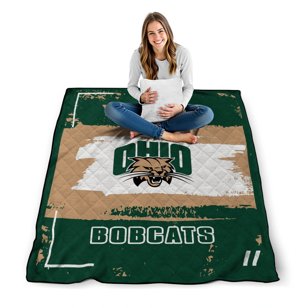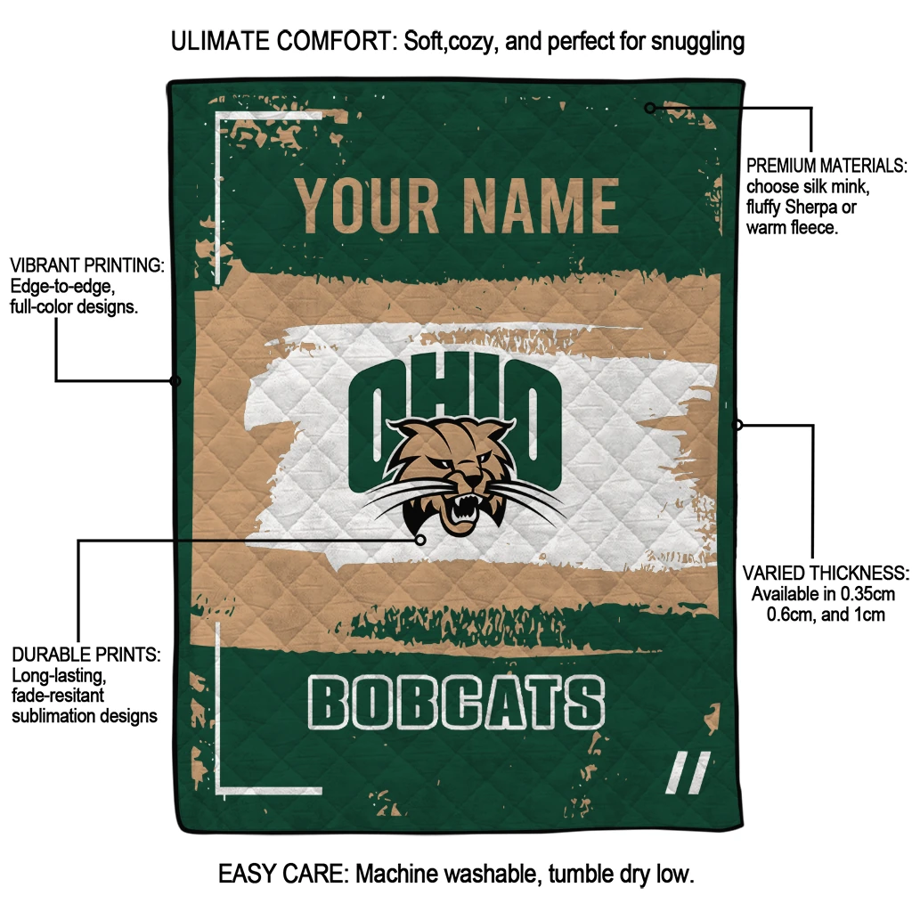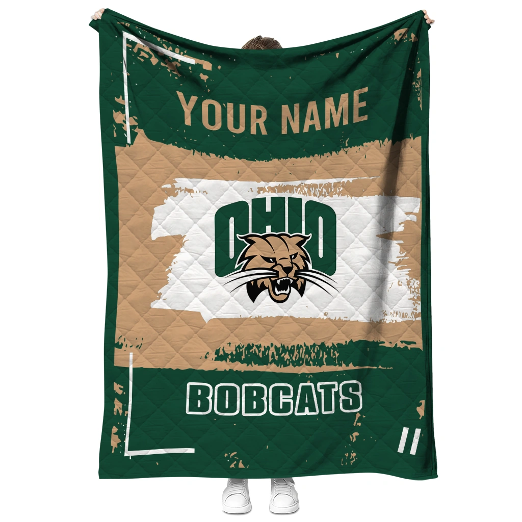 Personalized Ohio Bobcats Grunge Patch Green White Quilt Blanket