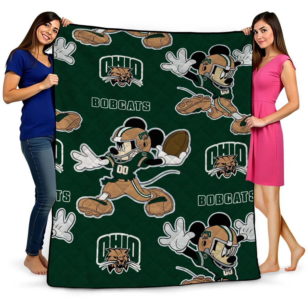 Wrap yourself in warmth and pride with the Personalized Ohio Bobcats Mickey Football Green Quilt Blanket from the Ohio Bobcats Blankets collection at Yes That Blanket. Made from 100% premium quilting-weight polyester blended with a touch of microfiber, this quilt offers a smooth, soft finish you’ll love. Choose between two quilting styles—Stipple or Diagonal—and enjoy the comfort of a cotton-filled layer inside that adds extra coziness for every season. The border is available in classic black or white, giving your design a clean, timeless edge.