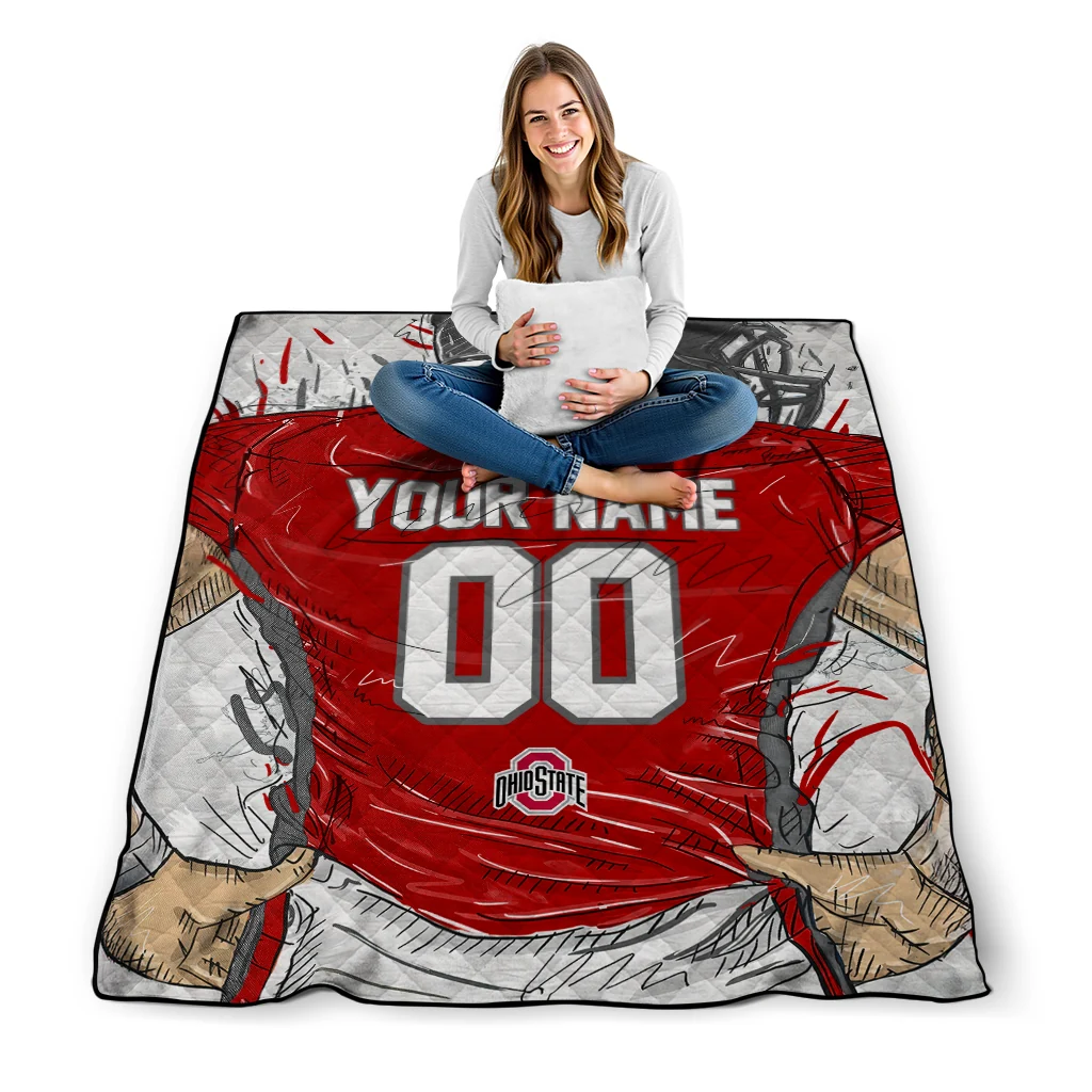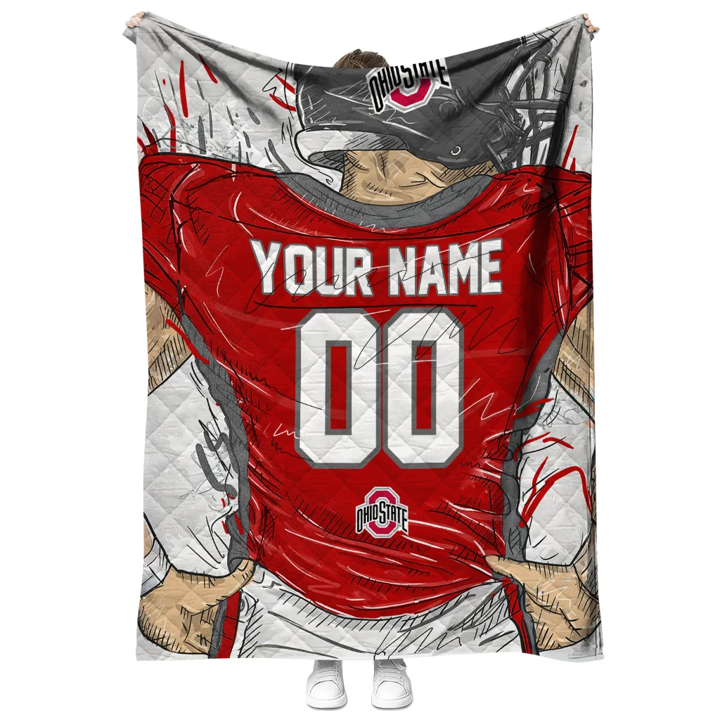 Personalized Ohio State Buckeyes Player Sketch Scarlet Gray Quilt Blanket