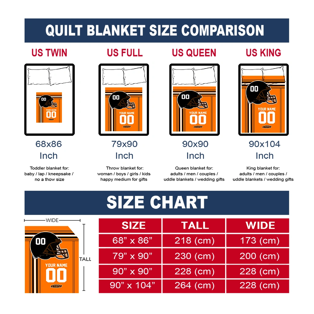 The Personalized Oklahoma State Cowboys Helmet Theme Orange Quilt Blanket is more than a blanket—it’s everyday comfort, thoughtfully made. Crafted from premium quilting fabric with a soft microfiber touch, it offers a smooth hand-feel and lasting coziness. Layered quilting with a cotton-filled core provides adaptable warmth across seasons while maintaining a clean, tailored look on your bed or sofa.