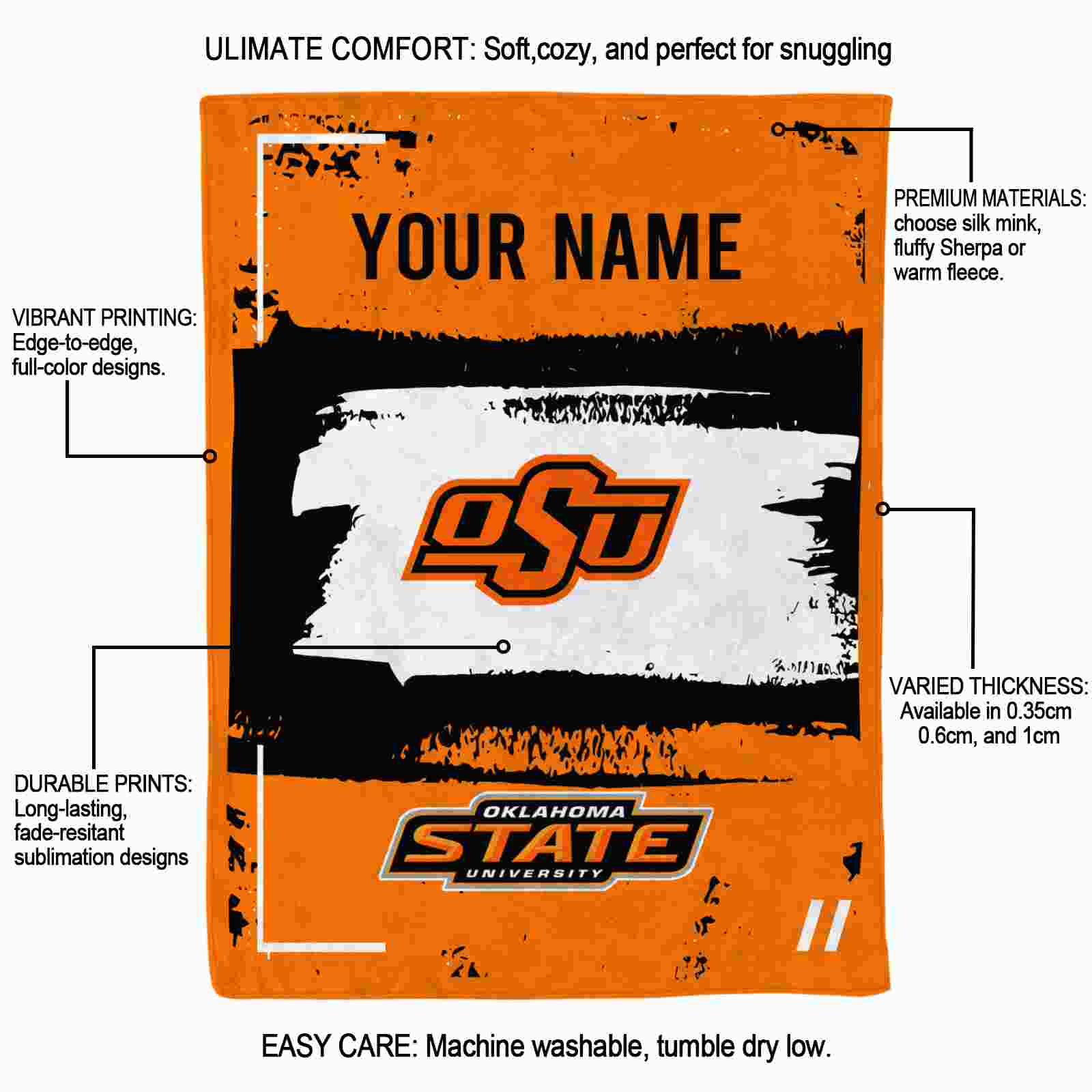Without a doubt, the Personalized Oklahoma State Cowboys Paint Strokes Orange White Blanket from Oklahoma State Cowboys Blankets collection is offering true fans a chance to showcase passion in a cool way. Personalize it with your favorite team's logo or a meaningful name to make it uniquely yours. Isn't that great? The full-color print ensures vibrant, edge-to-edge designs, bringing your sports enthusiasm to life!