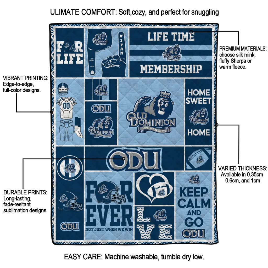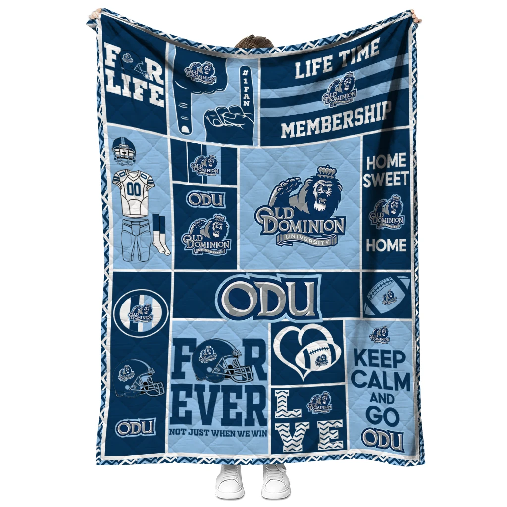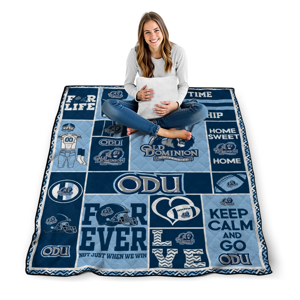 Wrap yourself in warmth and pride with the Personalized Old Dominion Monarchs Helmet Passion Blue Quilt Blanket from the Old Dominion Monarchs Blankets collection at Yes That Blanket. Made from 100% premium quilting-weight polyester blended with a touch of microfiber, this quilt offers a smooth, soft finish you’ll love. Choose between two quilting styles—Stipple or Diagonal—and enjoy the comfort of a cotton-filled layer inside that adds extra coziness for every season. The border is available in classic black or white, giving your design a clean, timeless edge.