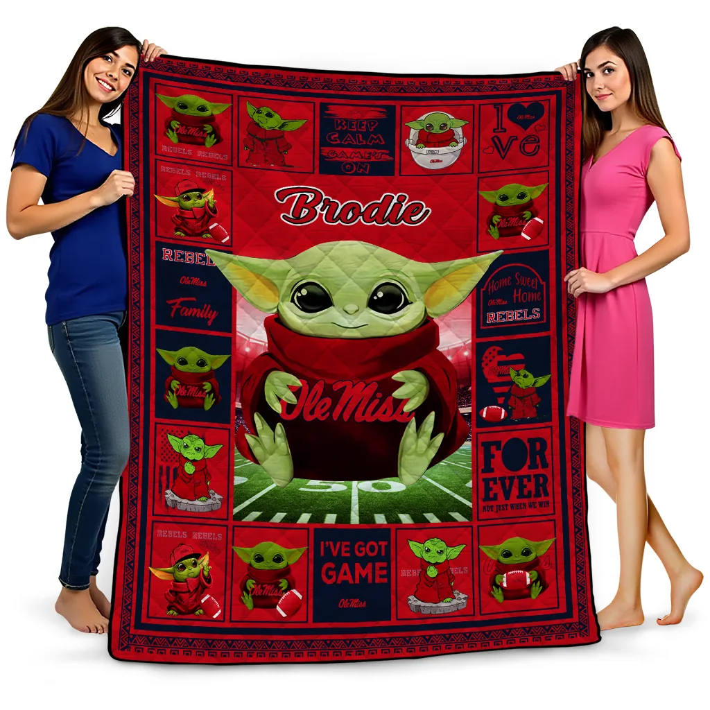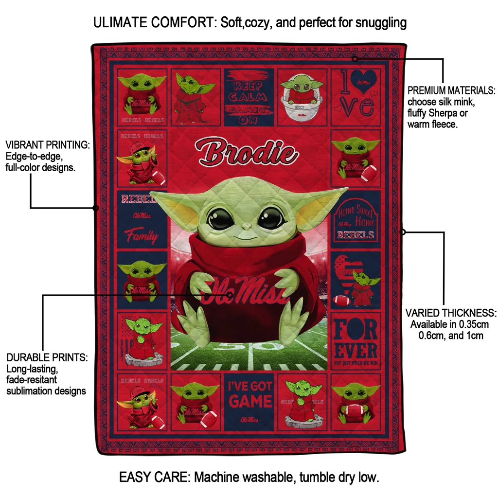 Personalized Ole Miss Rebels Yody Baby Pattern Red Quilt Blanket