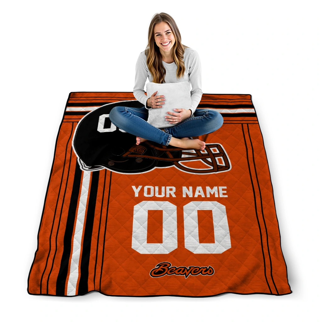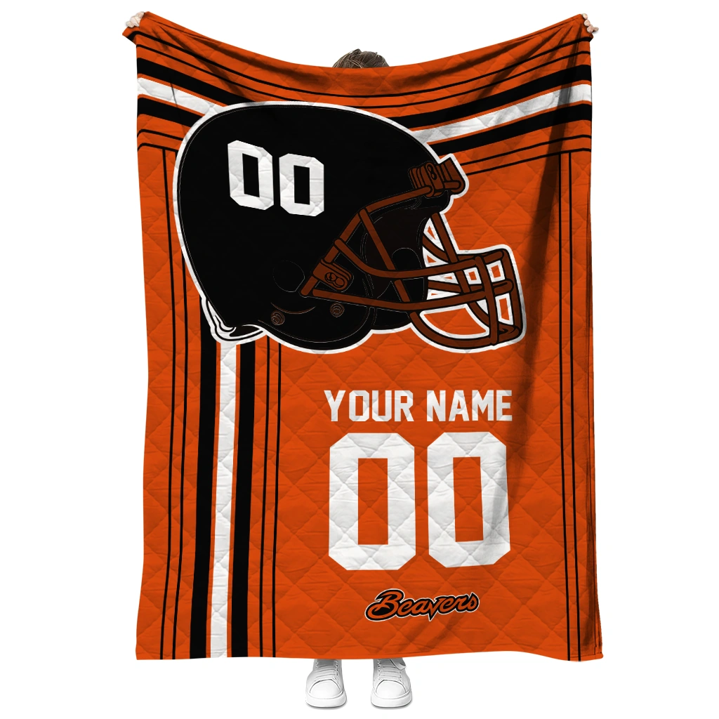 Personalized Oregon State Beavers Helmet Theme Orange Quilt Blanket