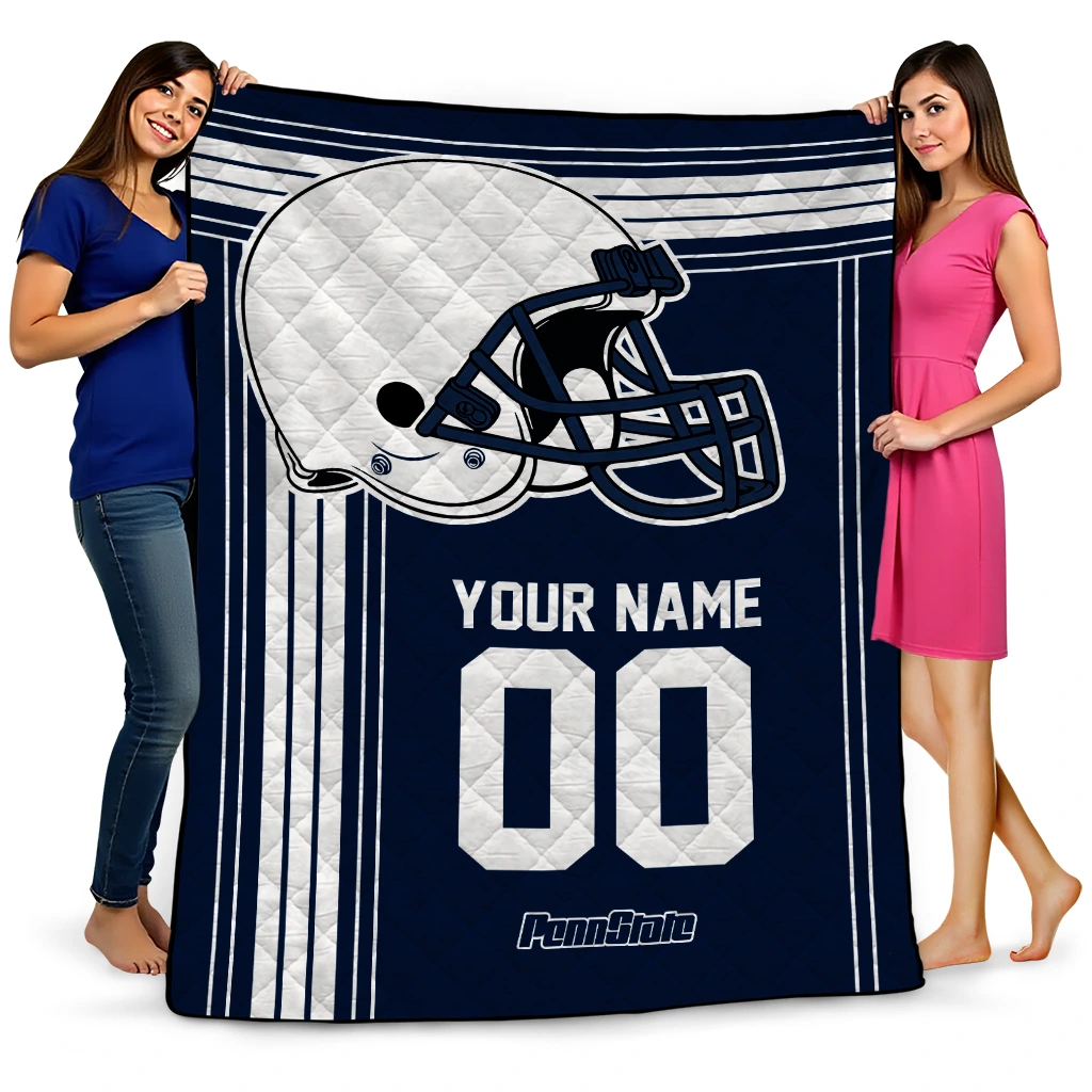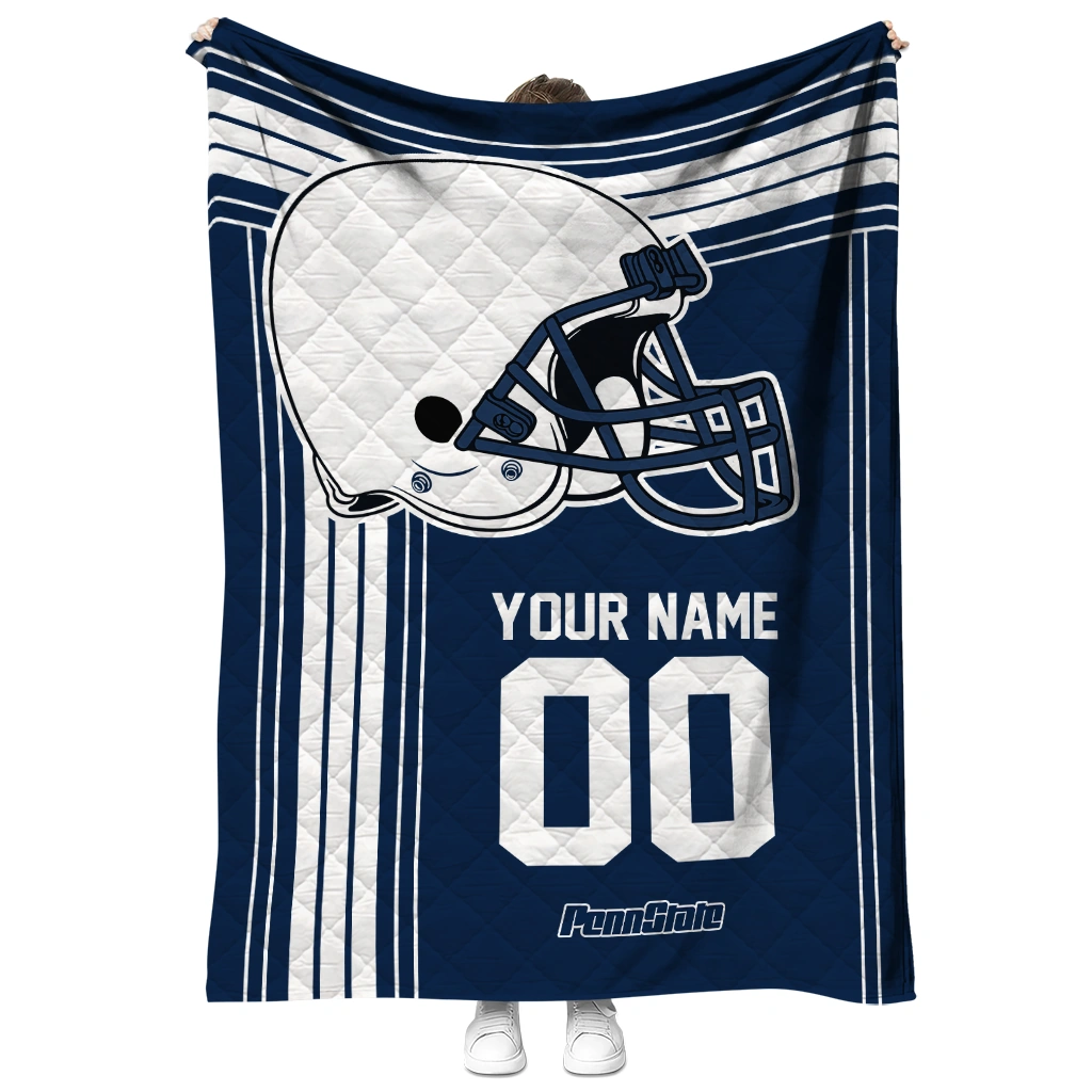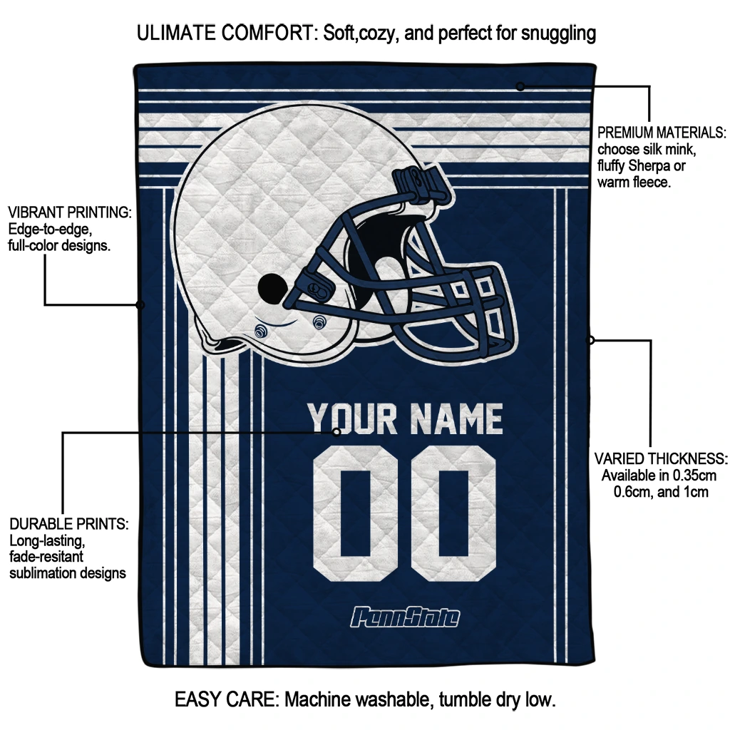 Personalized Penn State Nittany Lions Helmet Theme Blue Quilt Blanket