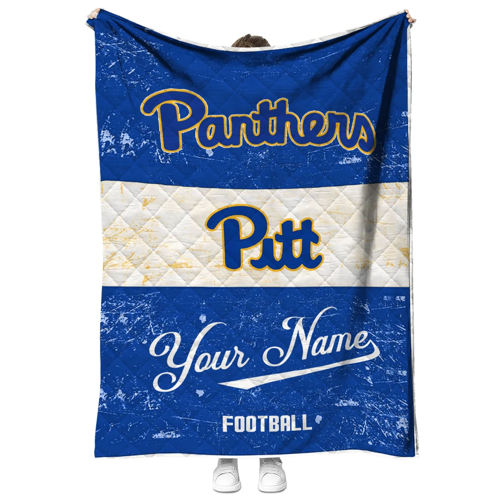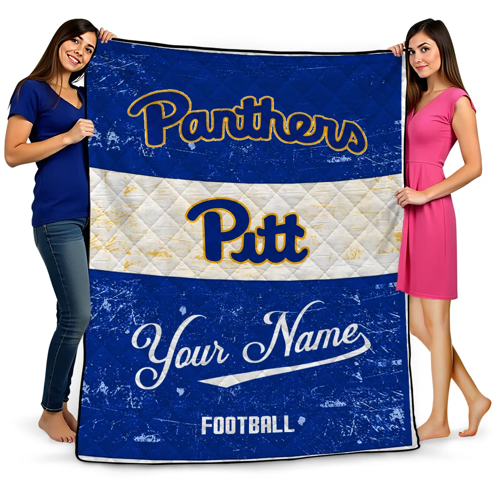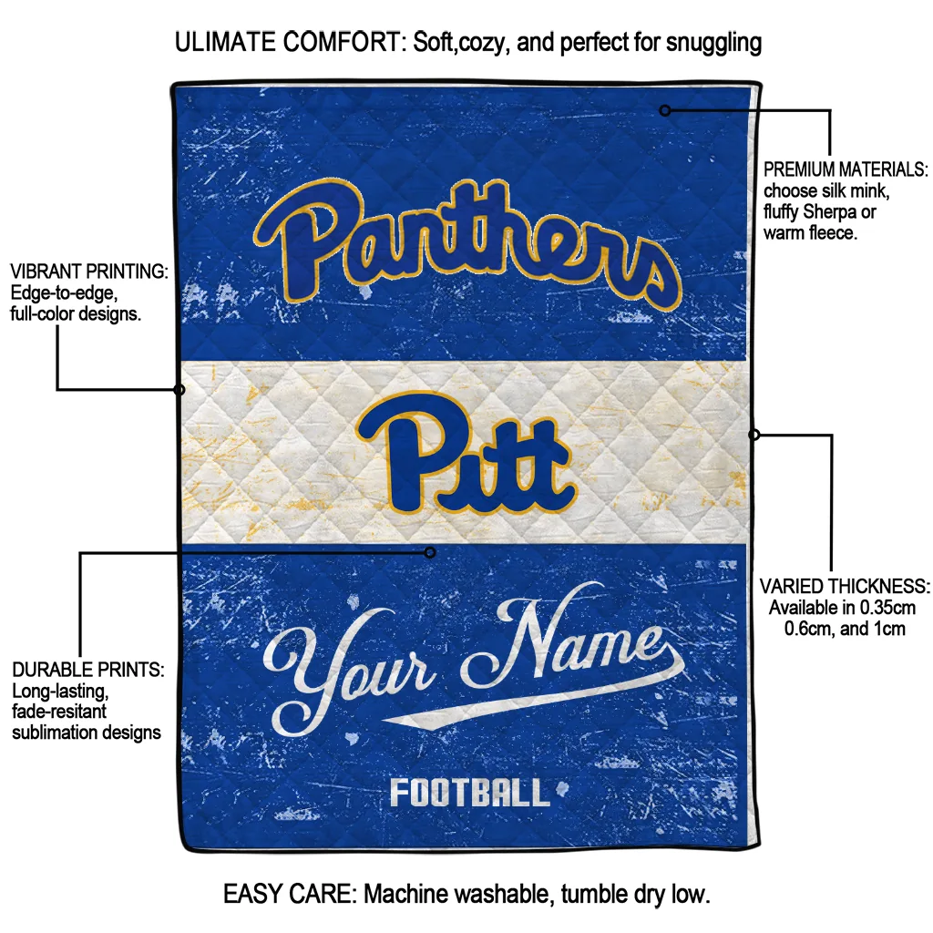 Wrap yourself in warmth and pride with the Personalized Pittsburgh Panthers Hibiscus Burst Royal Blue White Quilt Blanket from the Pittsburgh Panthers Blankets collection at Yes That Blanket. Made from 100% premium quilting-weight polyester blended with a touch of microfiber, this quilt offers a smooth, soft finish you’ll love. Choose between two quilting styles—Stipple or Diagonal—and enjoy the comfort of a cotton-filled layer inside that adds extra coziness for every season. The border is available in classic black or white, giving your design a clean, timeless edge.