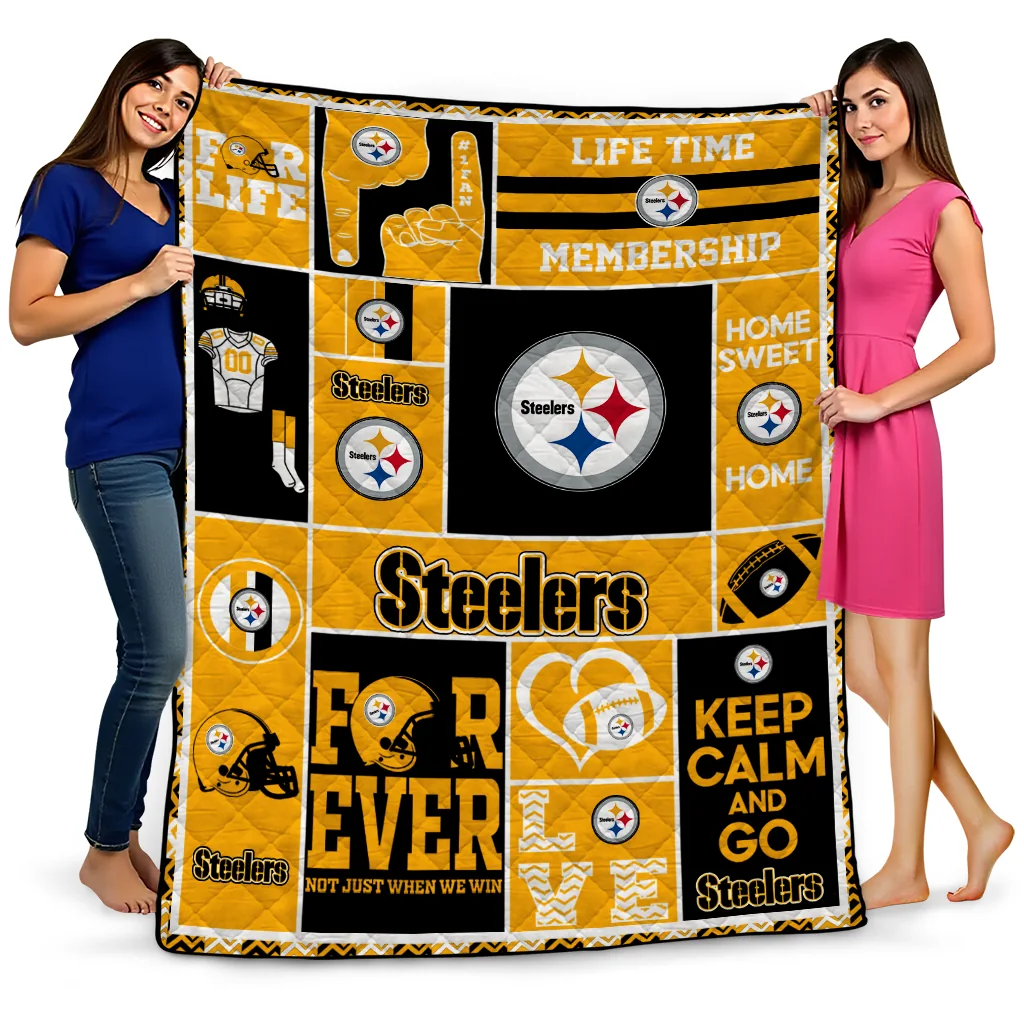 Personalized Pittsburgh Steelers Helmet Passion Gold Quilt Blanket