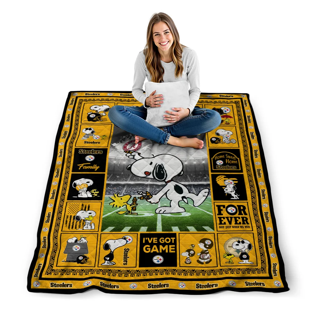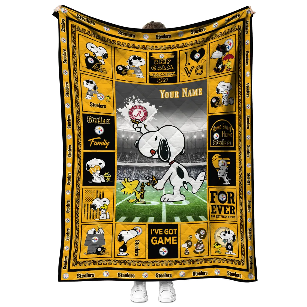 Personalized Pittsburgh Steelers Snoopy Coach Gold Quilt Blanket