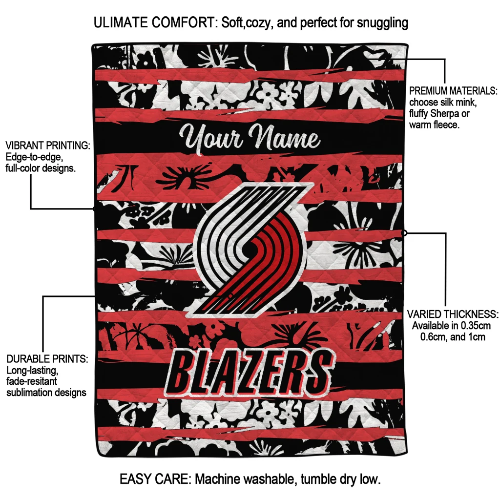 Wrap yourself in warmth and pride with the Personalized Portland Trail Blazers Layered Florals Red White Quilt Blanket from the Portland Trail Blazers Blankets collection at Yes That Blanket. Made from 100% premium quilting-weight polyester blended with a touch of microfiber, this quilt offers a smooth, soft finish you’ll love. Choose between two quilting styles—Stipple or Diagonal—and enjoy the comfort of a cotton-filled layer inside that adds extra coziness for every season. The border is available in classic black or white, giving your design a clean, timeless edge.