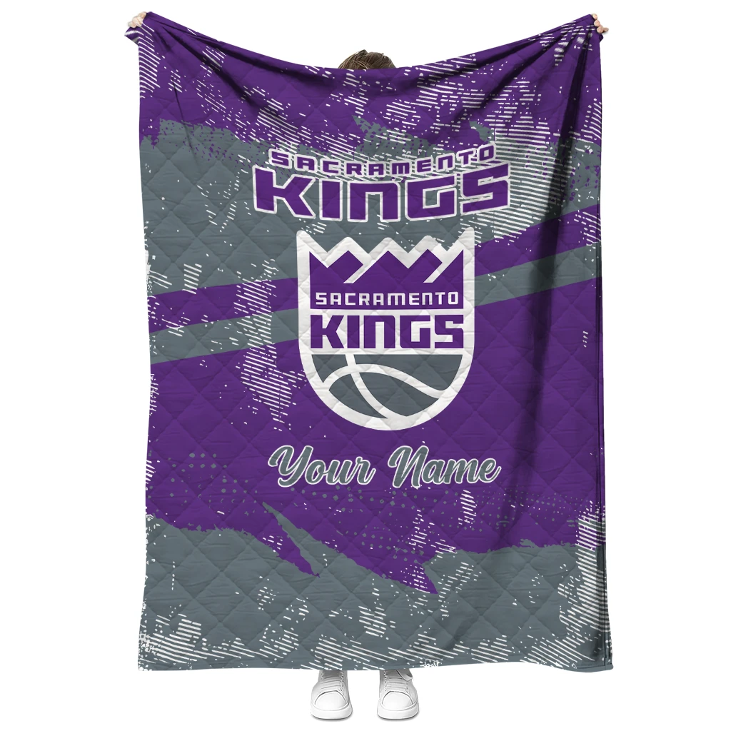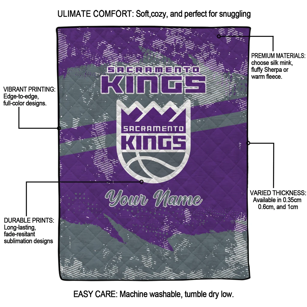 Personalized Sacramento Kings Brushstroke Layers Purple Quilt Blanket