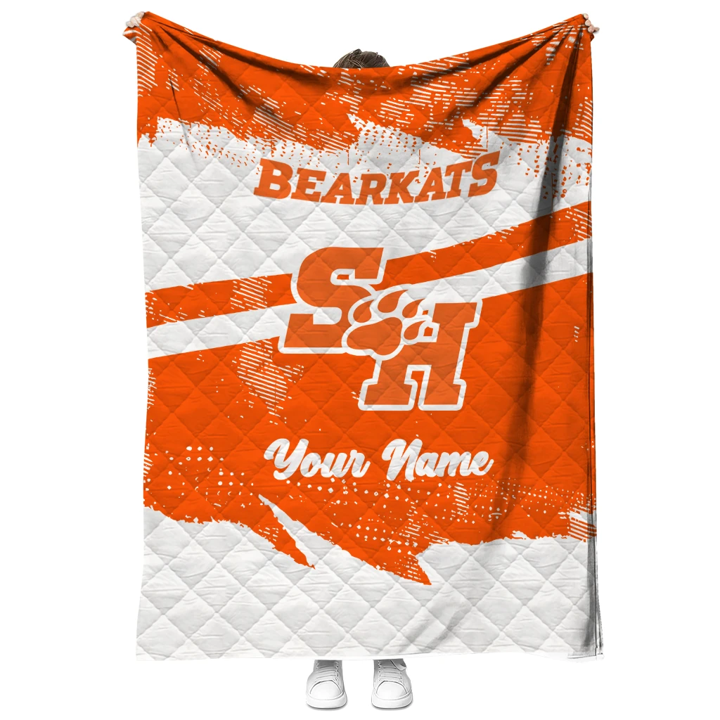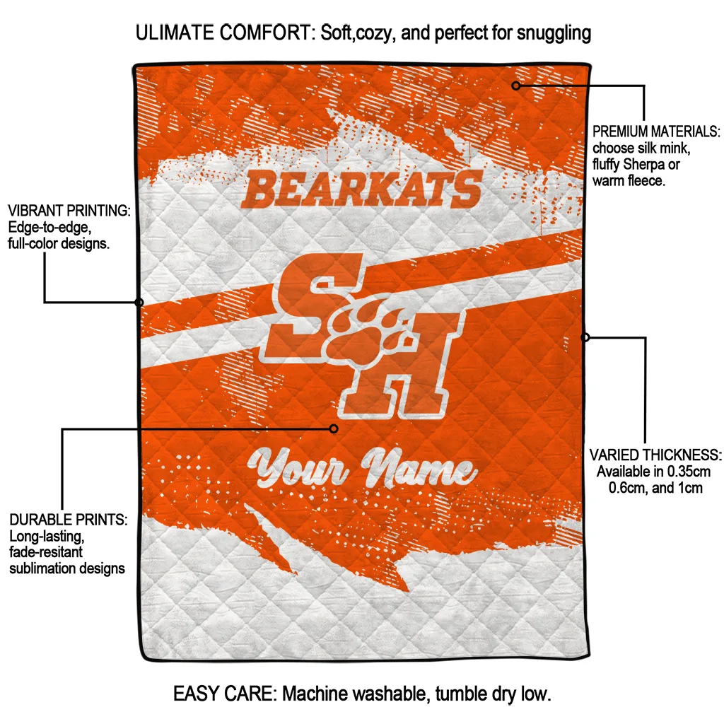 Personalized Sam Houston Bearkats Brushstroke Layers Orange Quilt Blanket