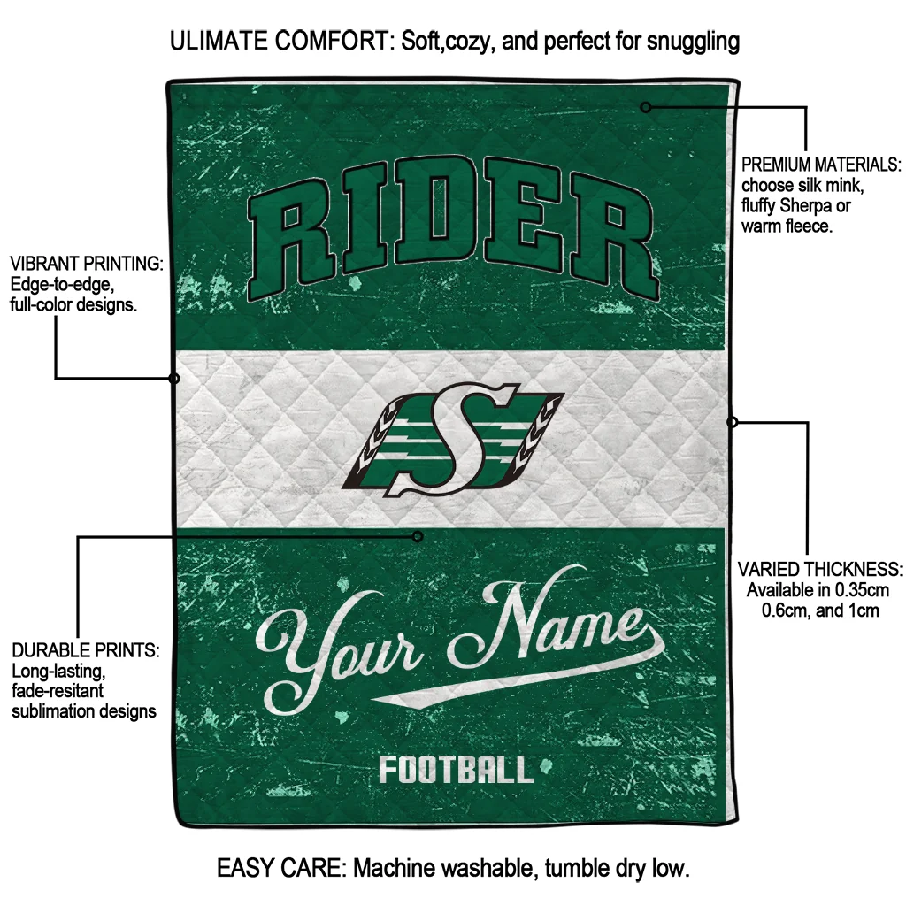 The Personalized Saskatchewan Roughriders Hibiscus Burst Green White Quilt Blanket is more than a blanket—it’s everyday comfort, thoughtfully made. Crafted from premium quilting fabric with a soft microfiber touch, it offers a smooth hand-feel and lasting coziness. Layered quilting with a cotton-filled core provides adaptable warmth across seasons while maintaining a clean, tailored look on your bed or sofa.