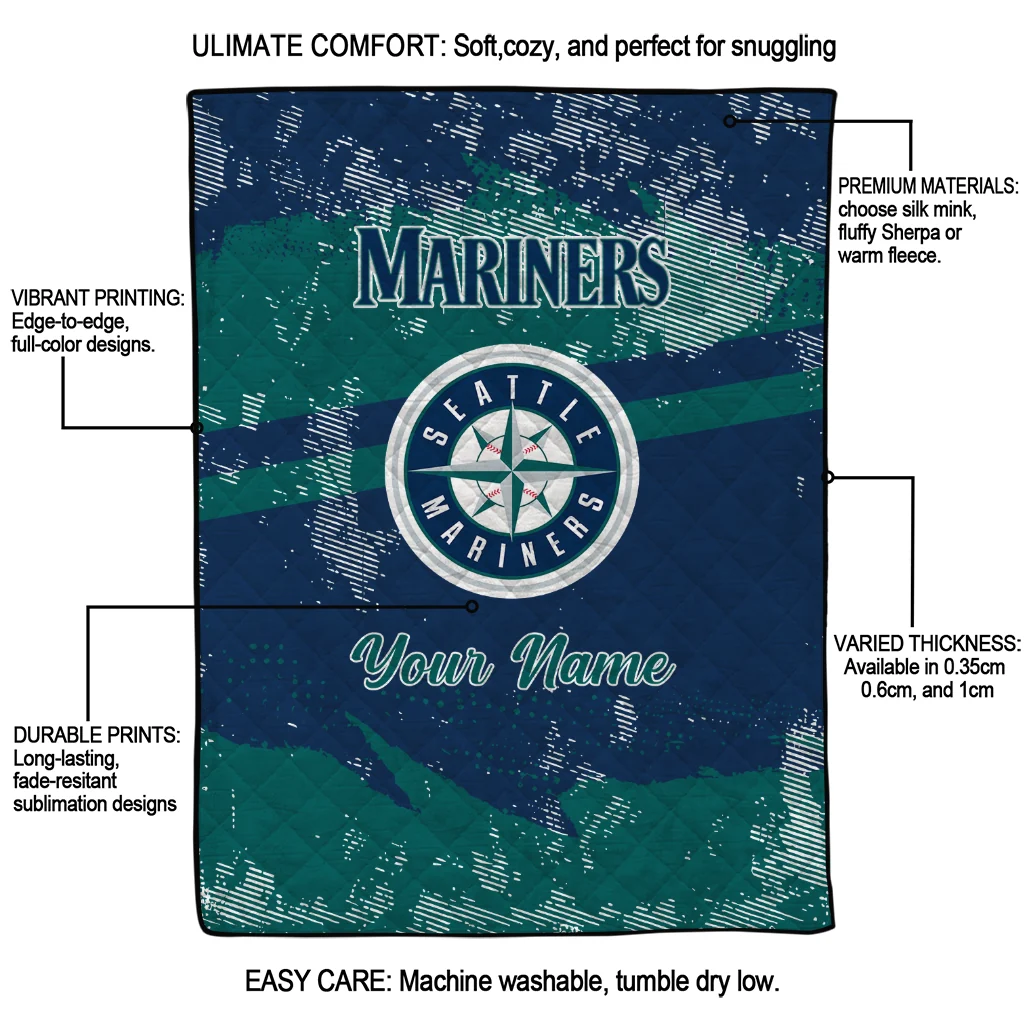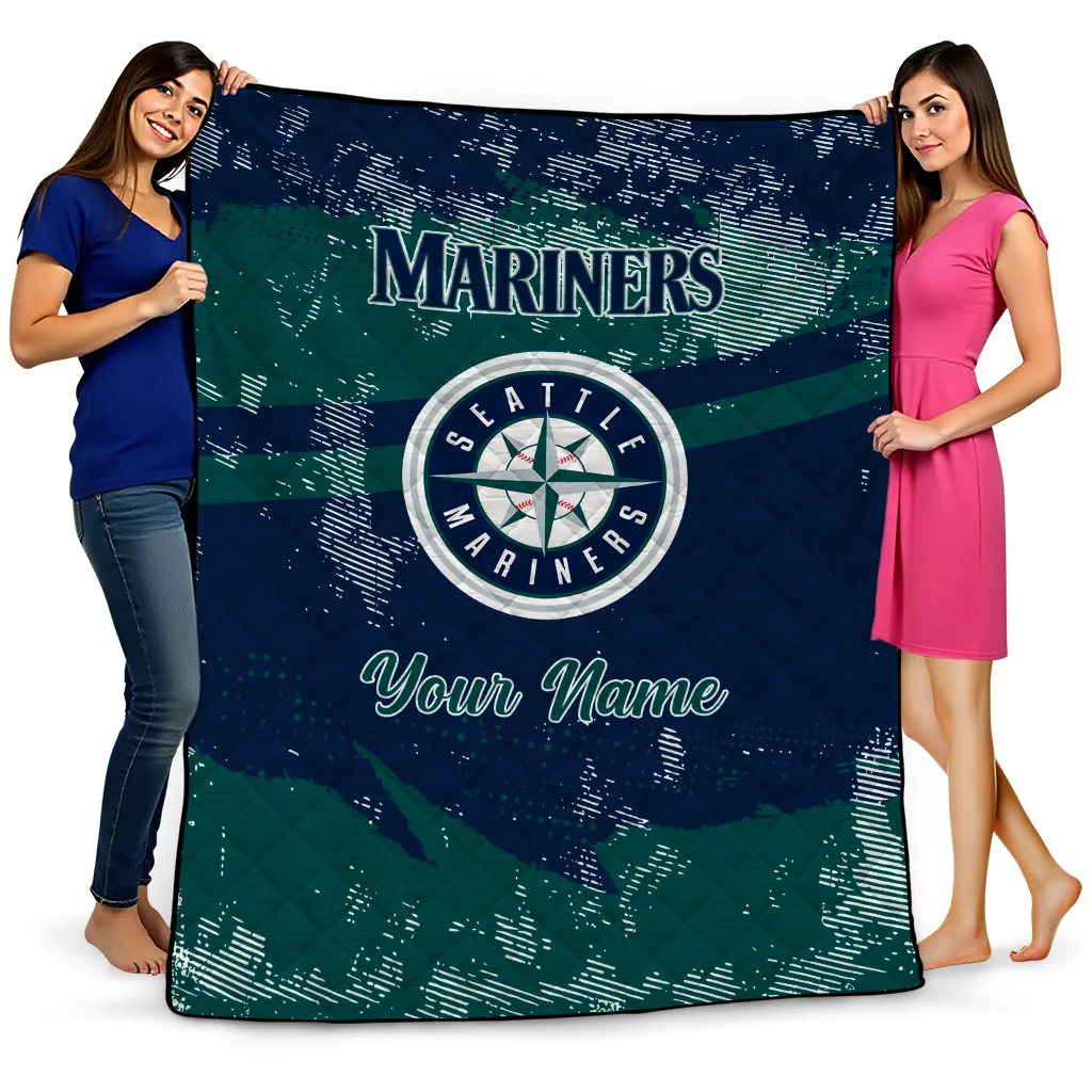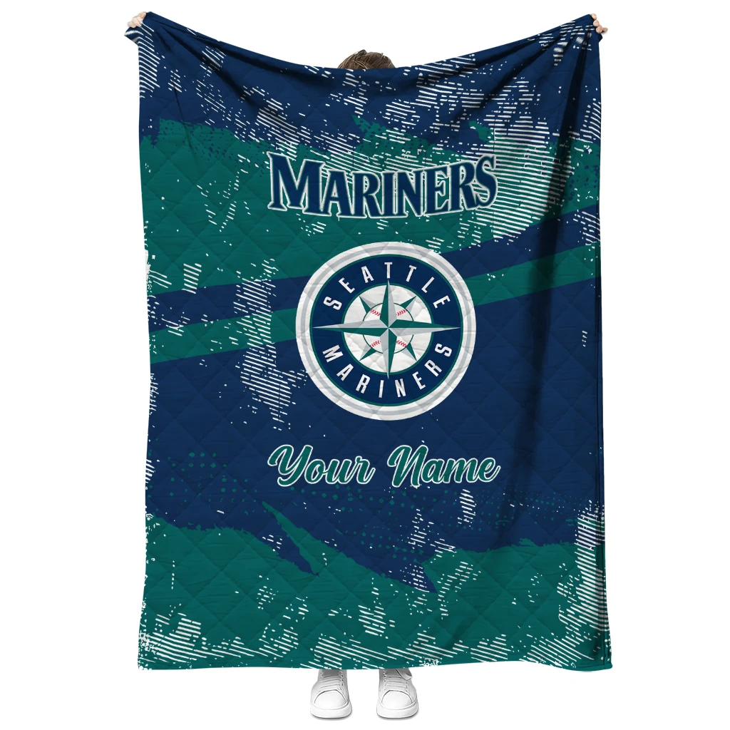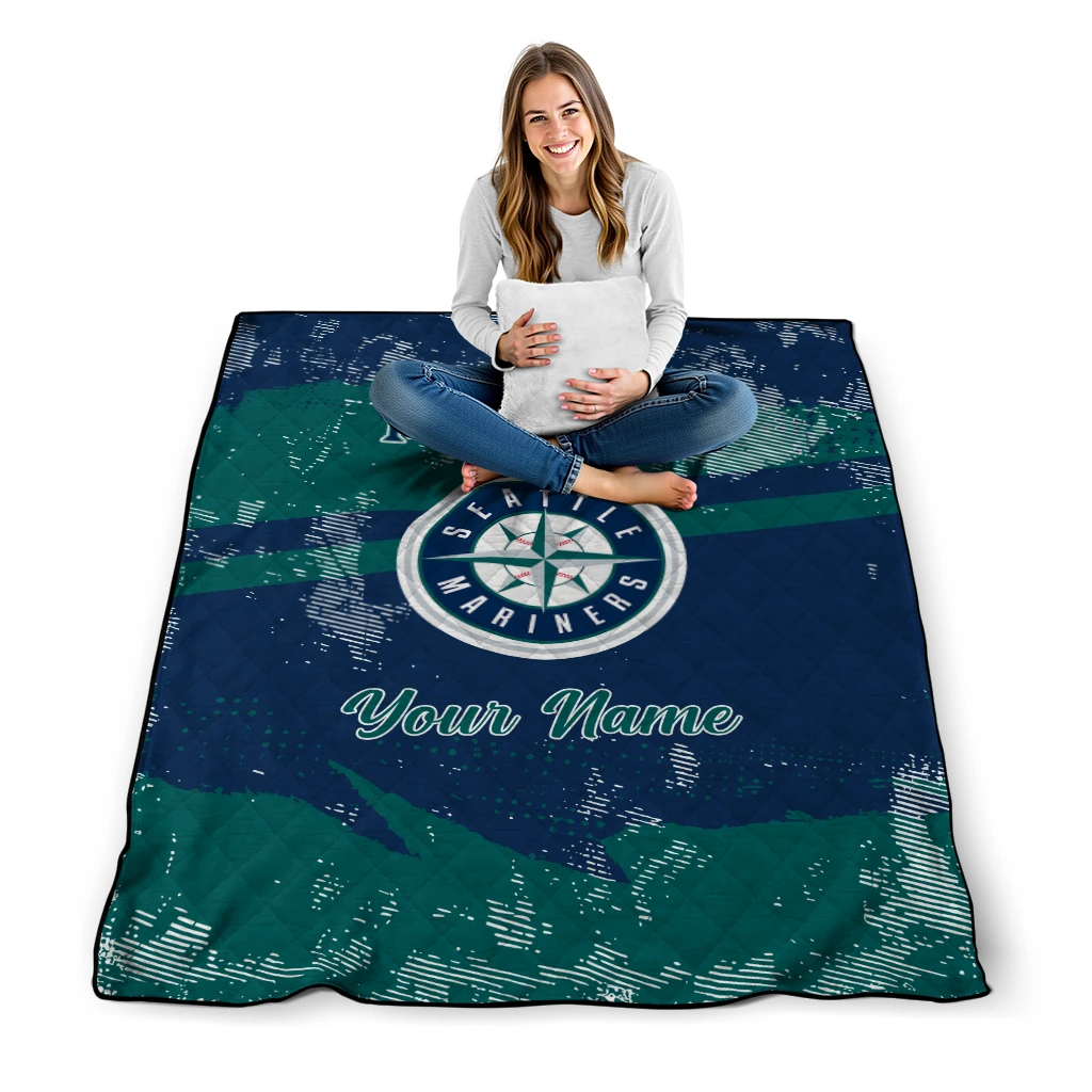 Wrap yourself in warmth and pride with the Personalized Seattle Mariners Brushstroke Layers Navy Blue Quilt Blanket from the Seattle Mariners Blankets collection at Yes That Blanket. Made from 100% premium quilting-weight polyester blended with a touch of microfiber, this quilt offers a smooth, soft finish you’ll love. Choose between two quilting styles—Stipple or Diagonal—and enjoy the comfort of a cotton-filled layer inside that adds extra coziness for every season. The border is available in classic black or white, giving your design a clean, timeless edge.