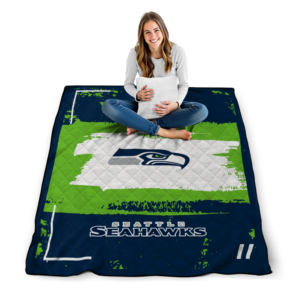 The Personalized Seattle Seahawks Grunge Patch Blue White Quilt Blanket is more than a blanket—it’s everyday comfort, thoughtfully made. Crafted from premium quilting fabric with a soft microfiber touch, it offers a smooth hand-feel and lasting coziness. Layered quilting with a cotton-filled core provides adaptable warmth across seasons while maintaining a clean, tailored look on your bed or sofa.