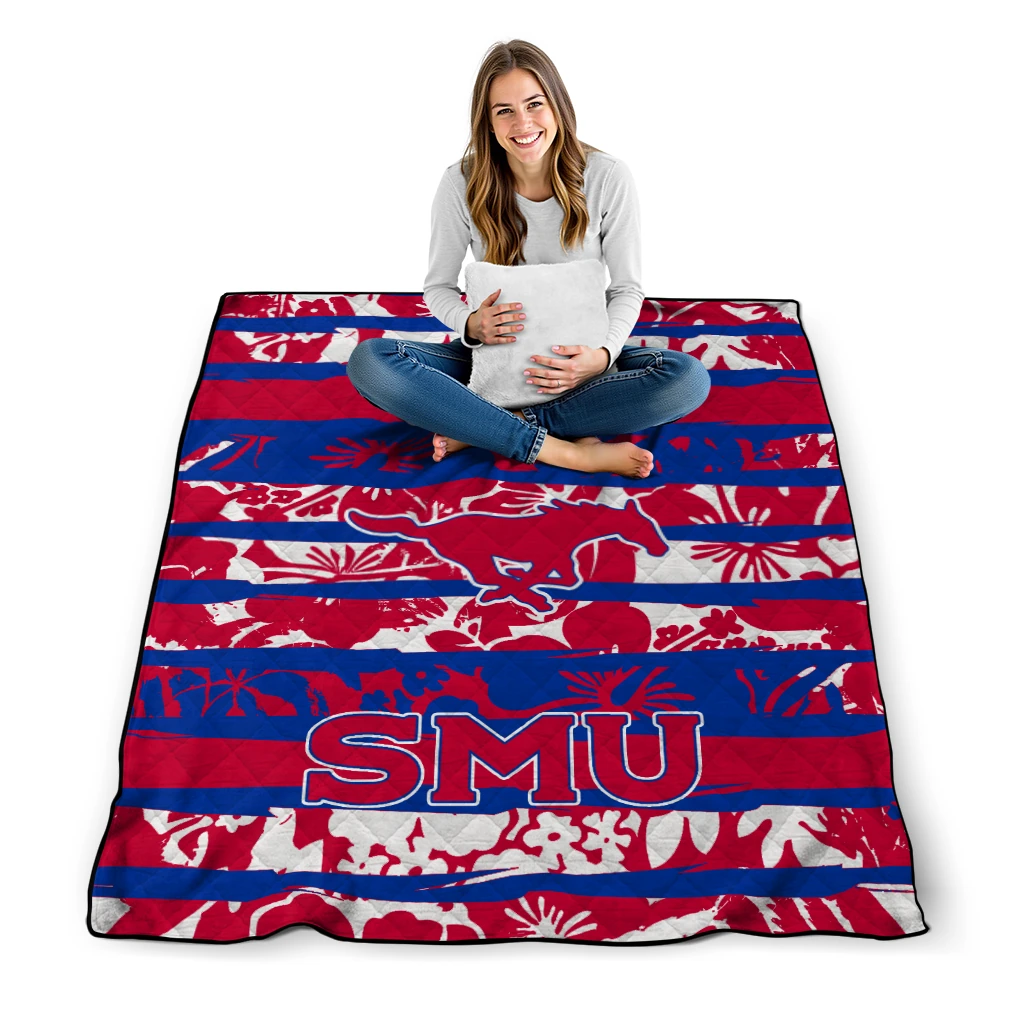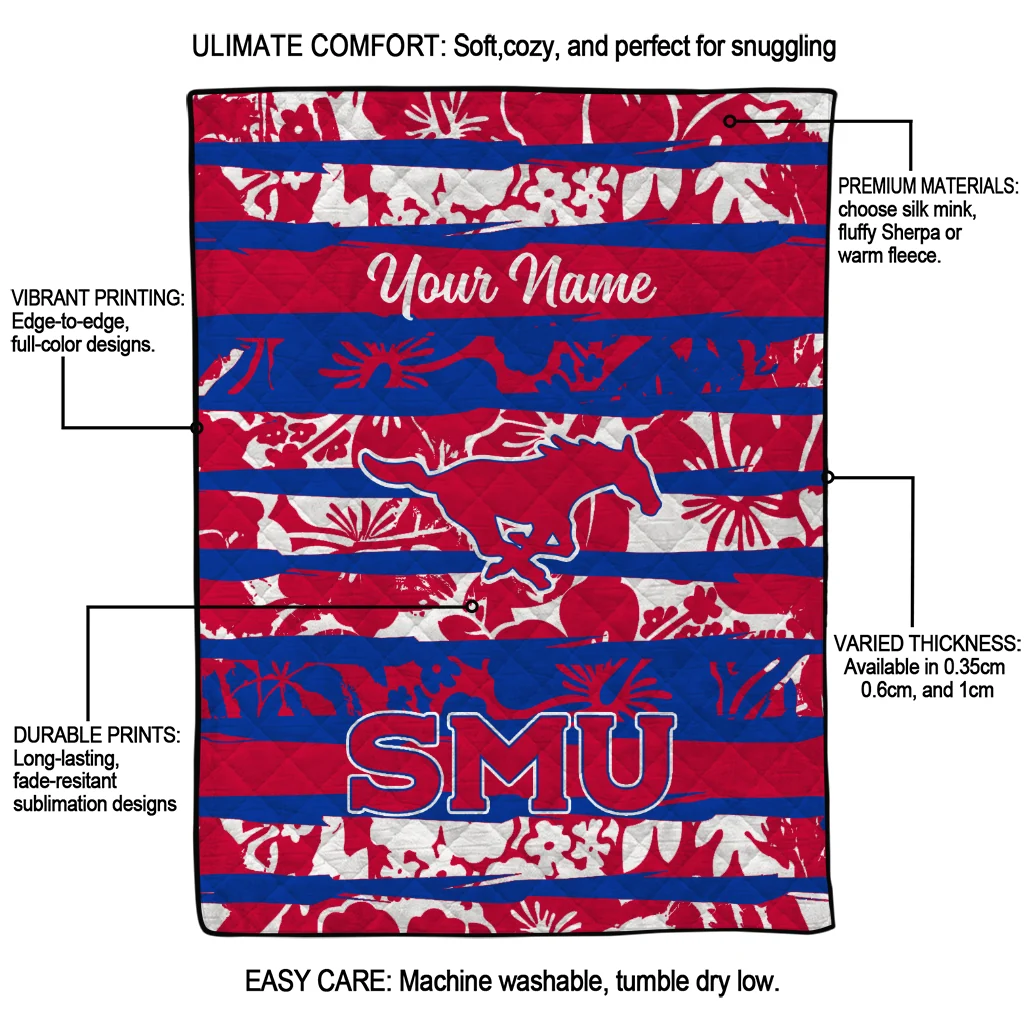 Personalized SMU Mustangs Layered Florals Blue White Quilt Blanket