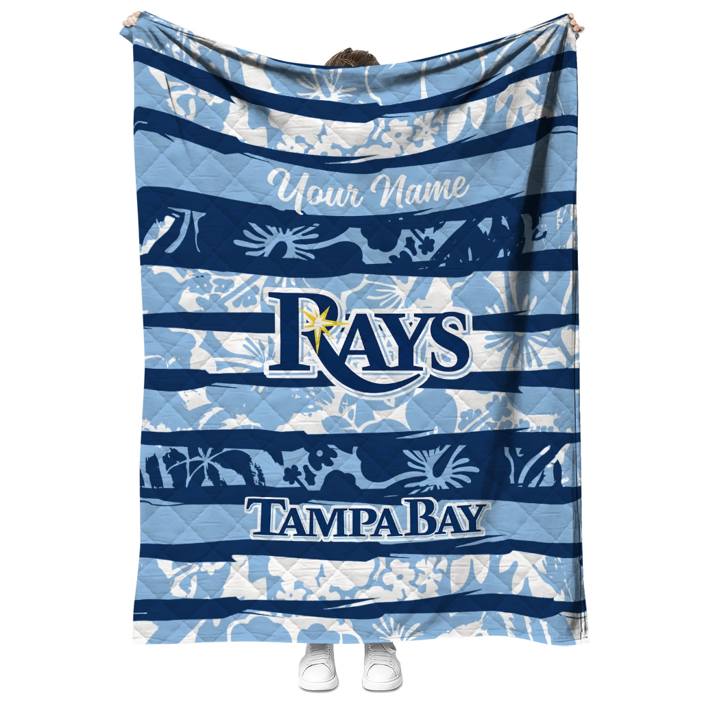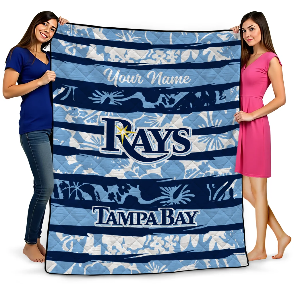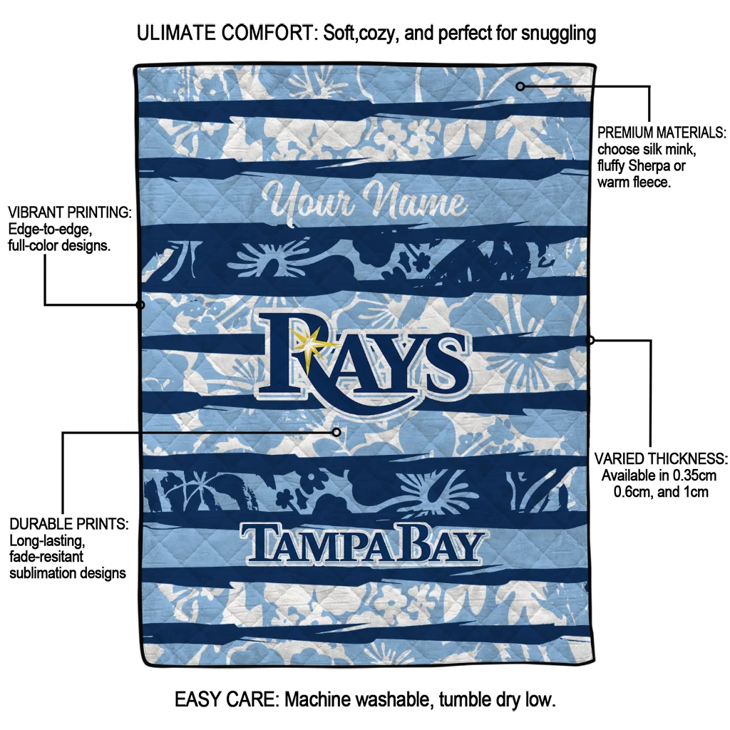 Personalized Tampa Bay Rays Layered Florals Navy White Quilt Blanket