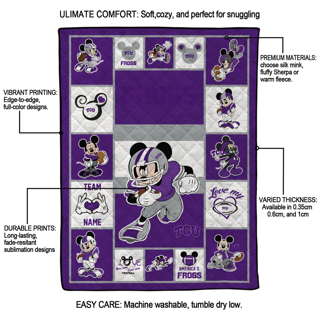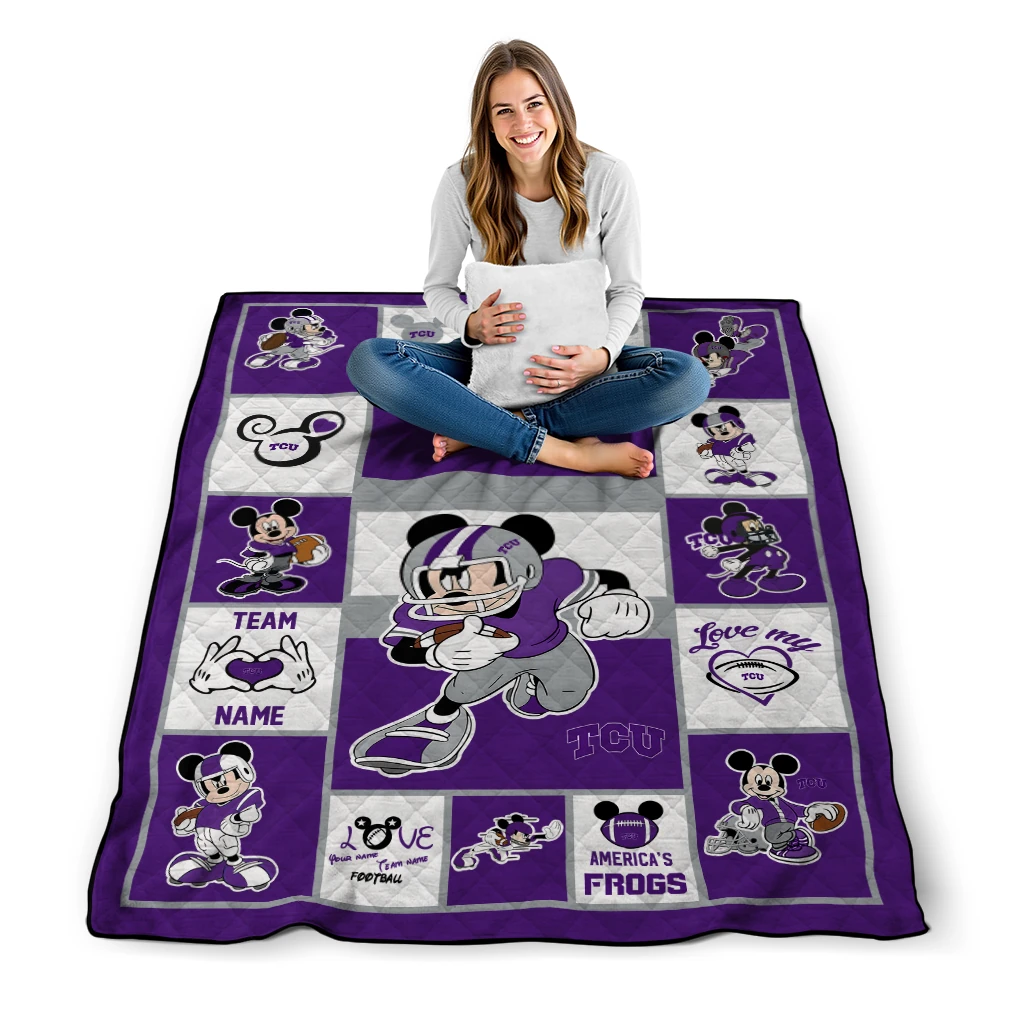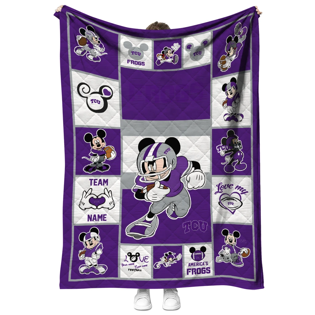 Personalized TCU Horned Frogs Mickey Crimson Purple White Quilt Blanket
