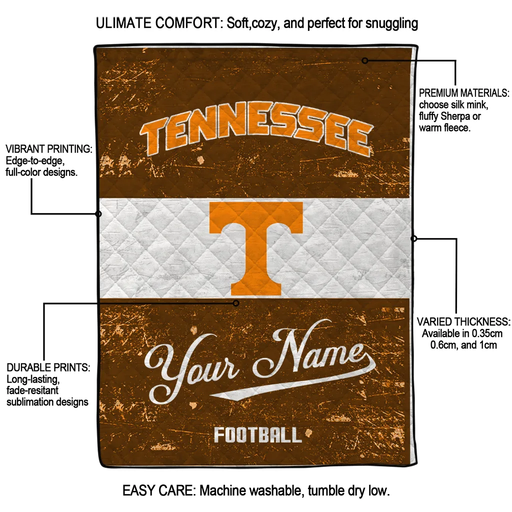 Wrap yourself in warmth and pride with the Personalized Tennessee Volunteers Hibiscus Burst Orange White Quilt Blanket from the Tennessee Volunteers Blankets collection at Yes That Blanket. Made from 100% premium quilting-weight polyester blended with a touch of microfiber, this quilt offers a smooth, soft finish you’ll love. Choose between two quilting styles—Stipple or Diagonal—and enjoy the comfort of a cotton-filled layer inside that adds extra coziness for every season. The border is available in classic black or white, giving your design a clean, timeless edge.