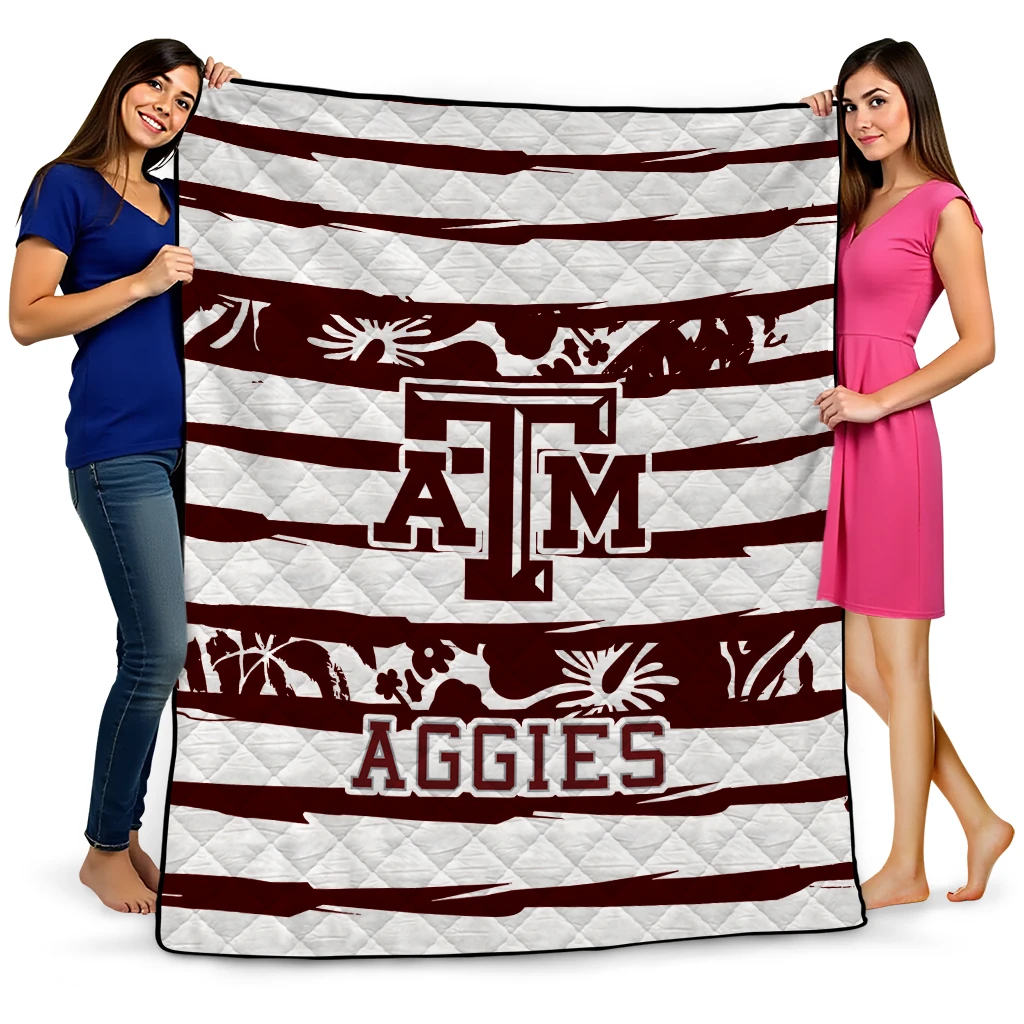 Personalized Texas A&M Aggies Layered Florals Maroon White Quilt Blanket