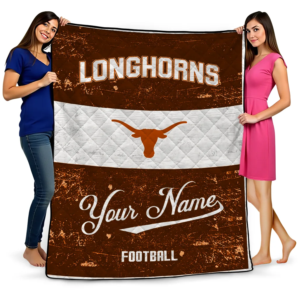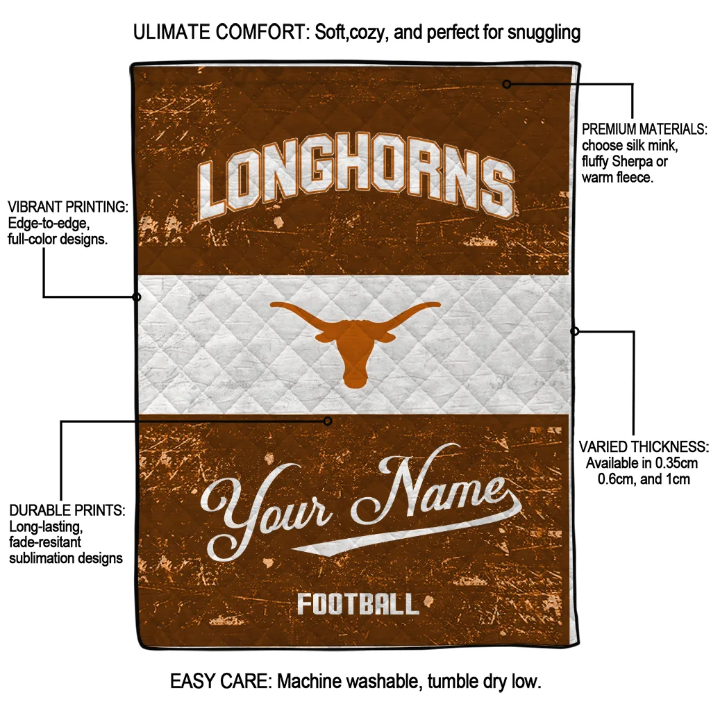 Wrap yourself in warmth and pride with the Personalized Texas Longhorns Hibiscus Burst Orange White Quilt Blanket from the Texas Longhorns Blankets collection at Yes That Blanket. Made from 100% premium quilting-weight polyester blended with a touch of microfiber, this quilt offers a smooth, soft finish you’ll love. Choose between two quilting styles—Stipple or Diagonal—and enjoy the comfort of a cotton-filled layer inside that adds extra coziness for every season. The border is available in classic black or white, giving your design a clean, timeless edge.
