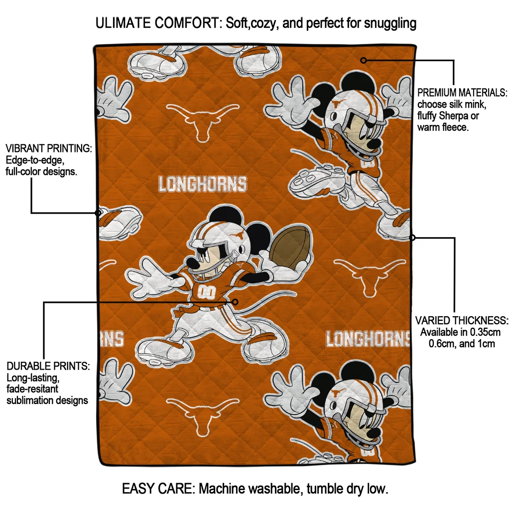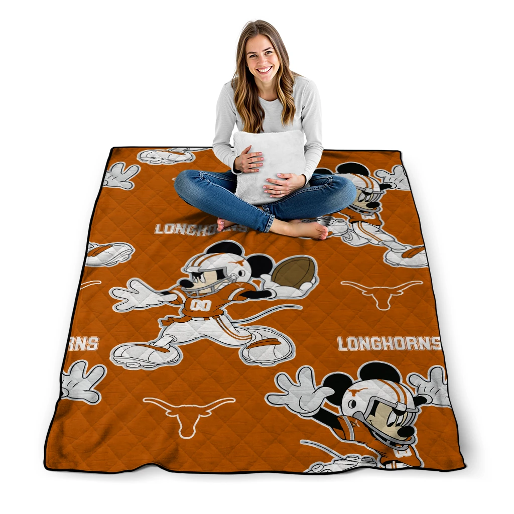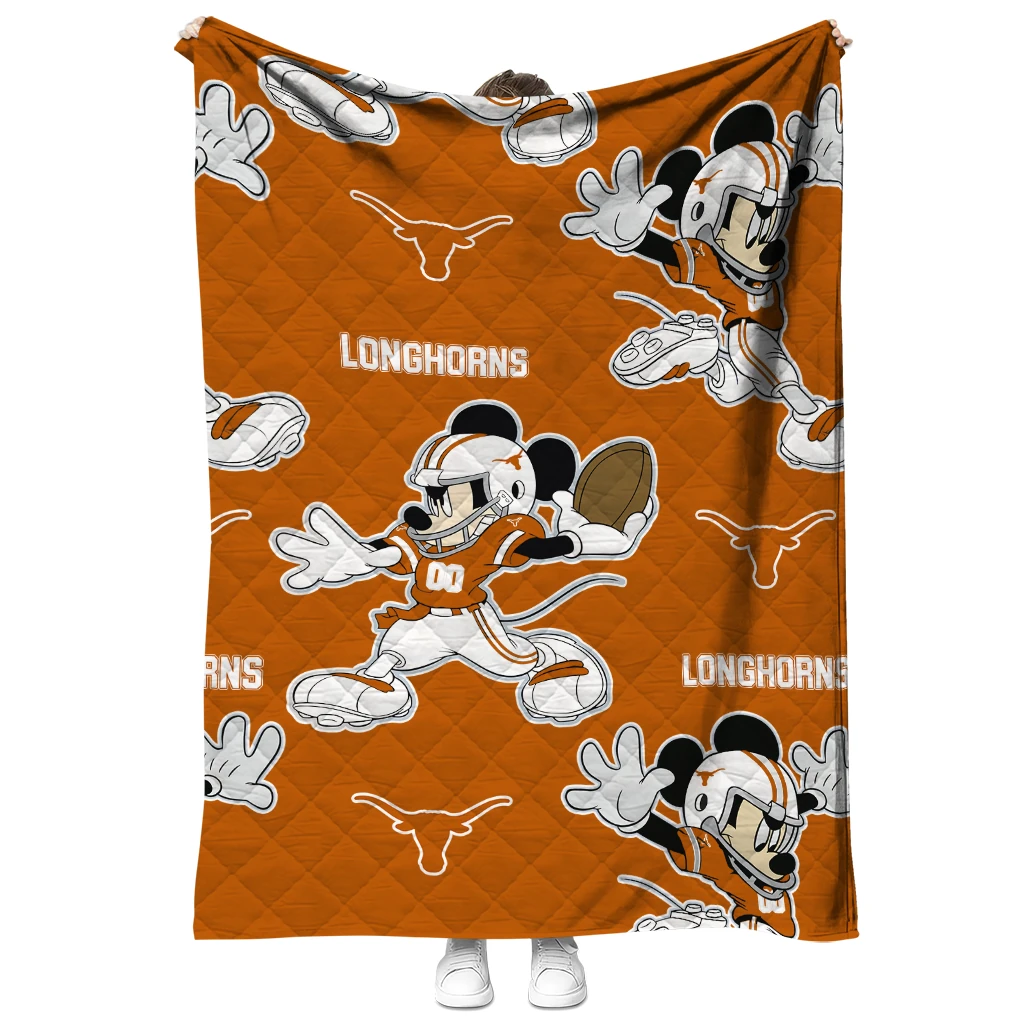 Personalized Texas Longhorns Mickey Football Orange Quilt Blanket