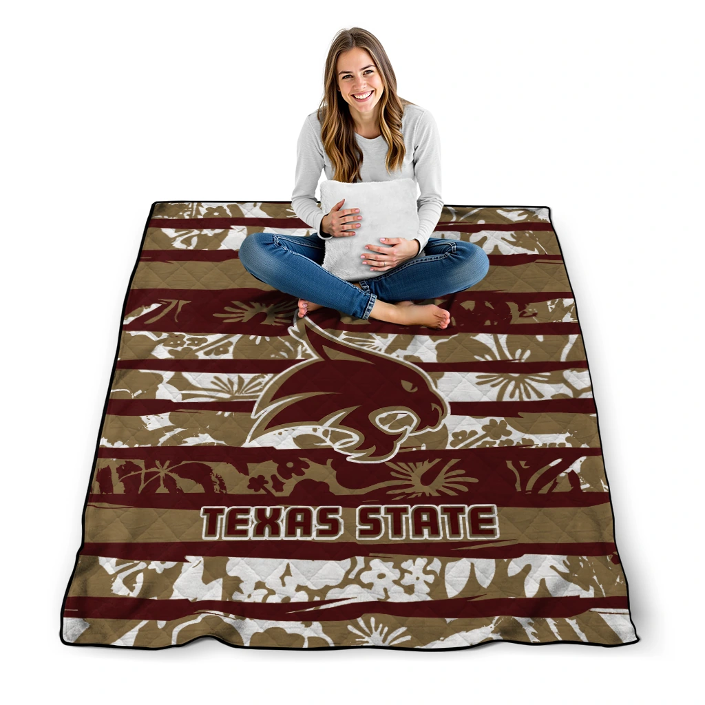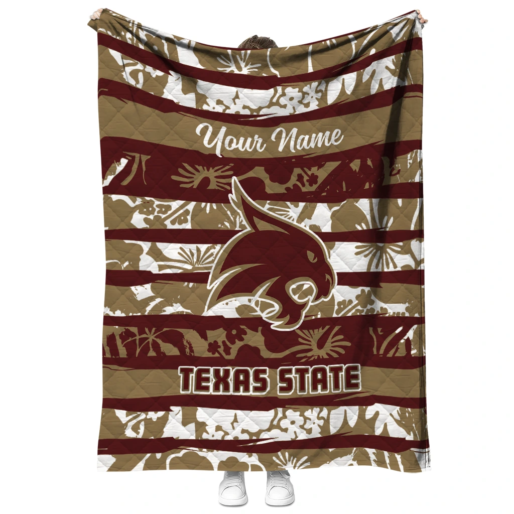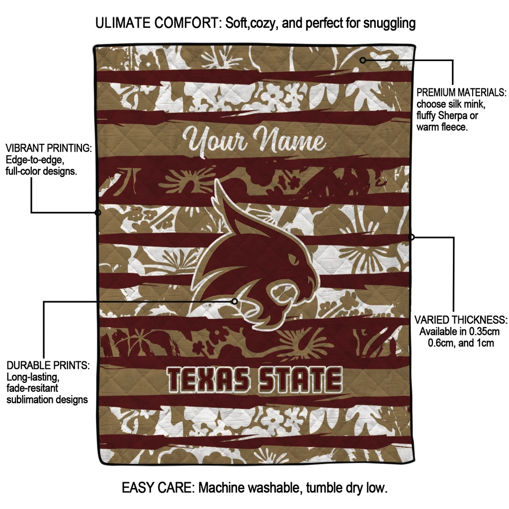Personalized Texas State Bobcats Layered Florals Maroon White Quilt Blanket