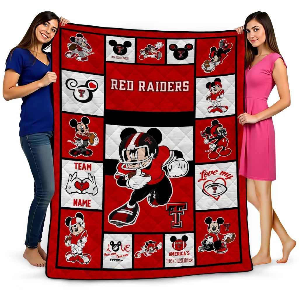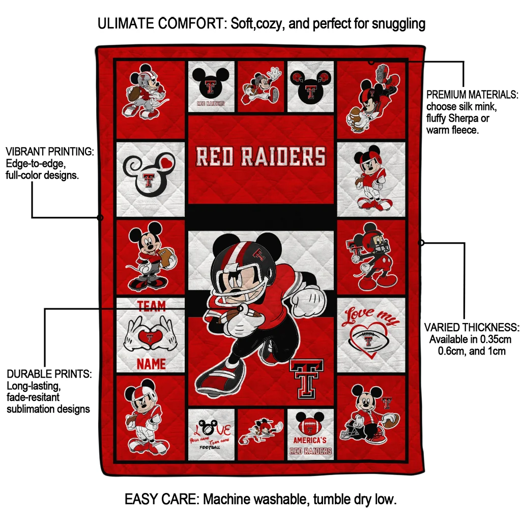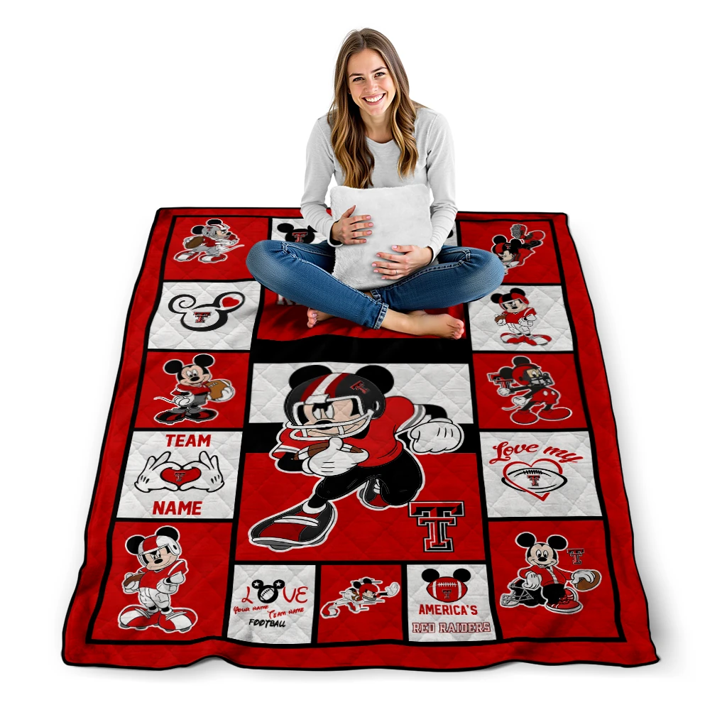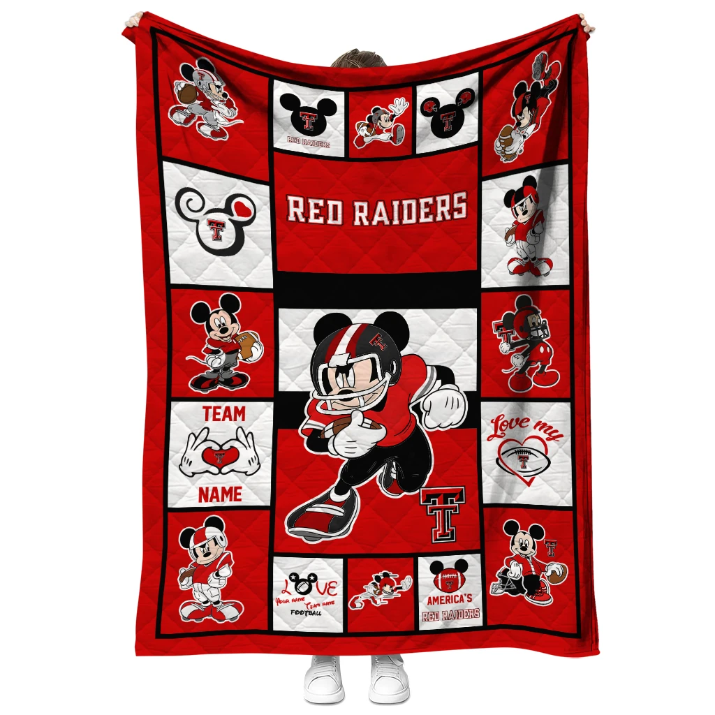Personalized Texas Tech Red Raiders Mickey Crimson Red White Quilt Blanket