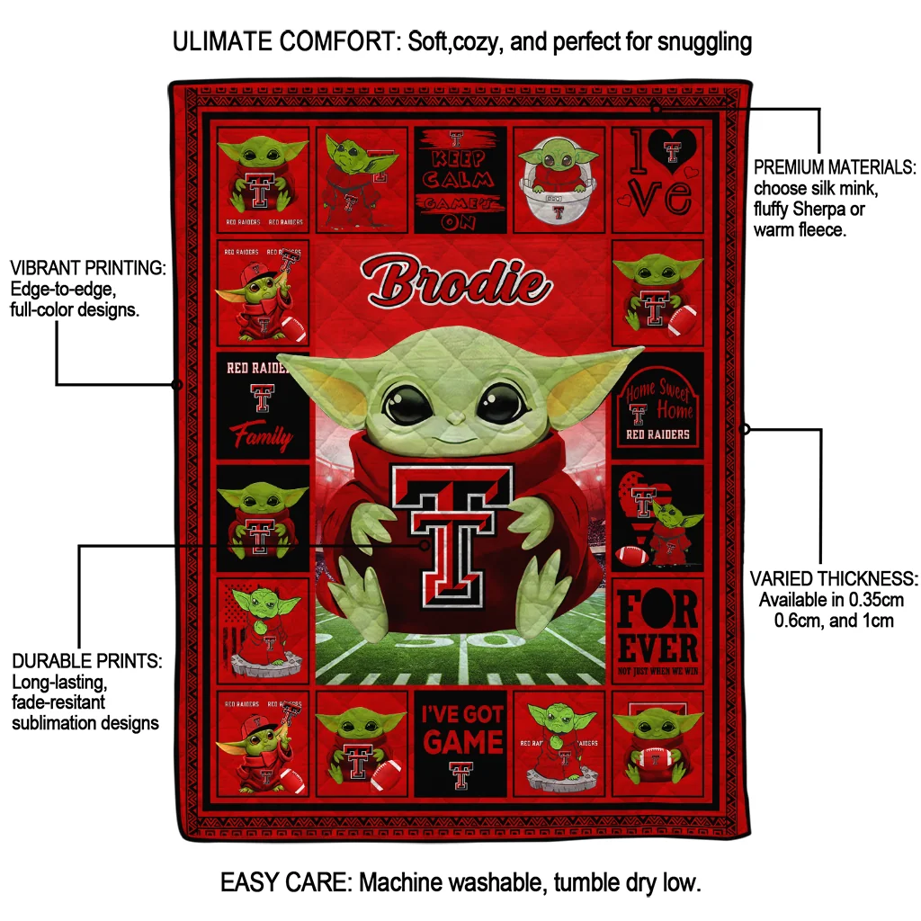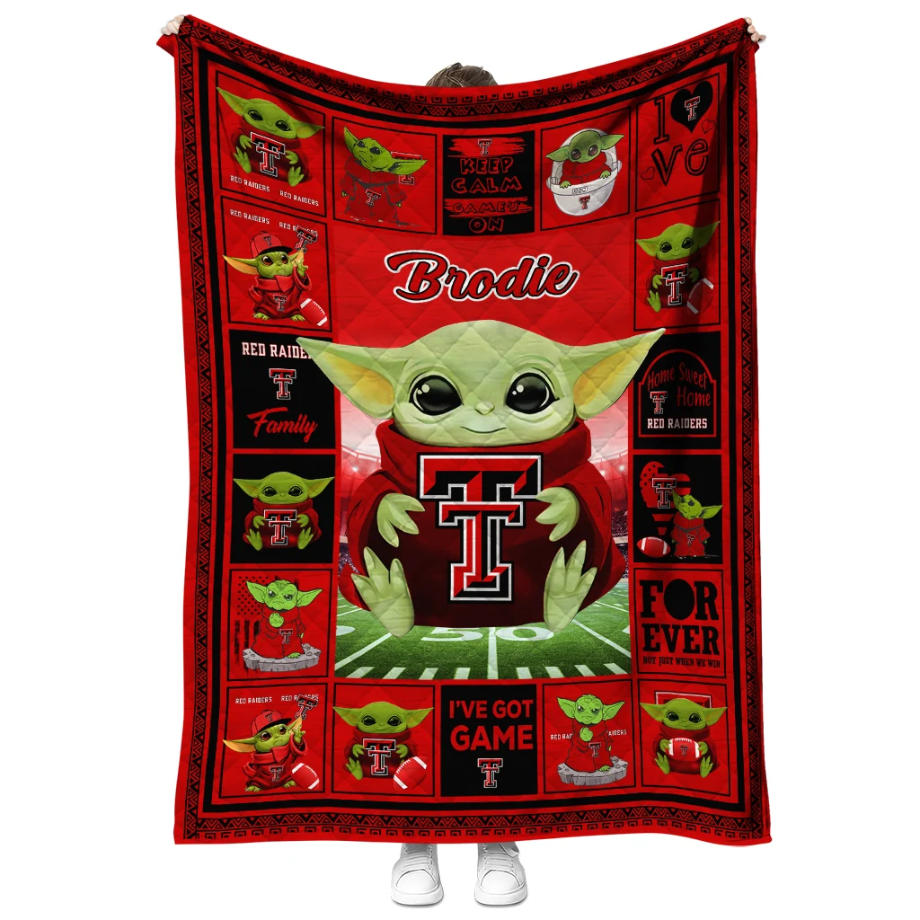 Personalized Texas Tech Red Raiders Yody Baby Pattern Red Quilt Blanket