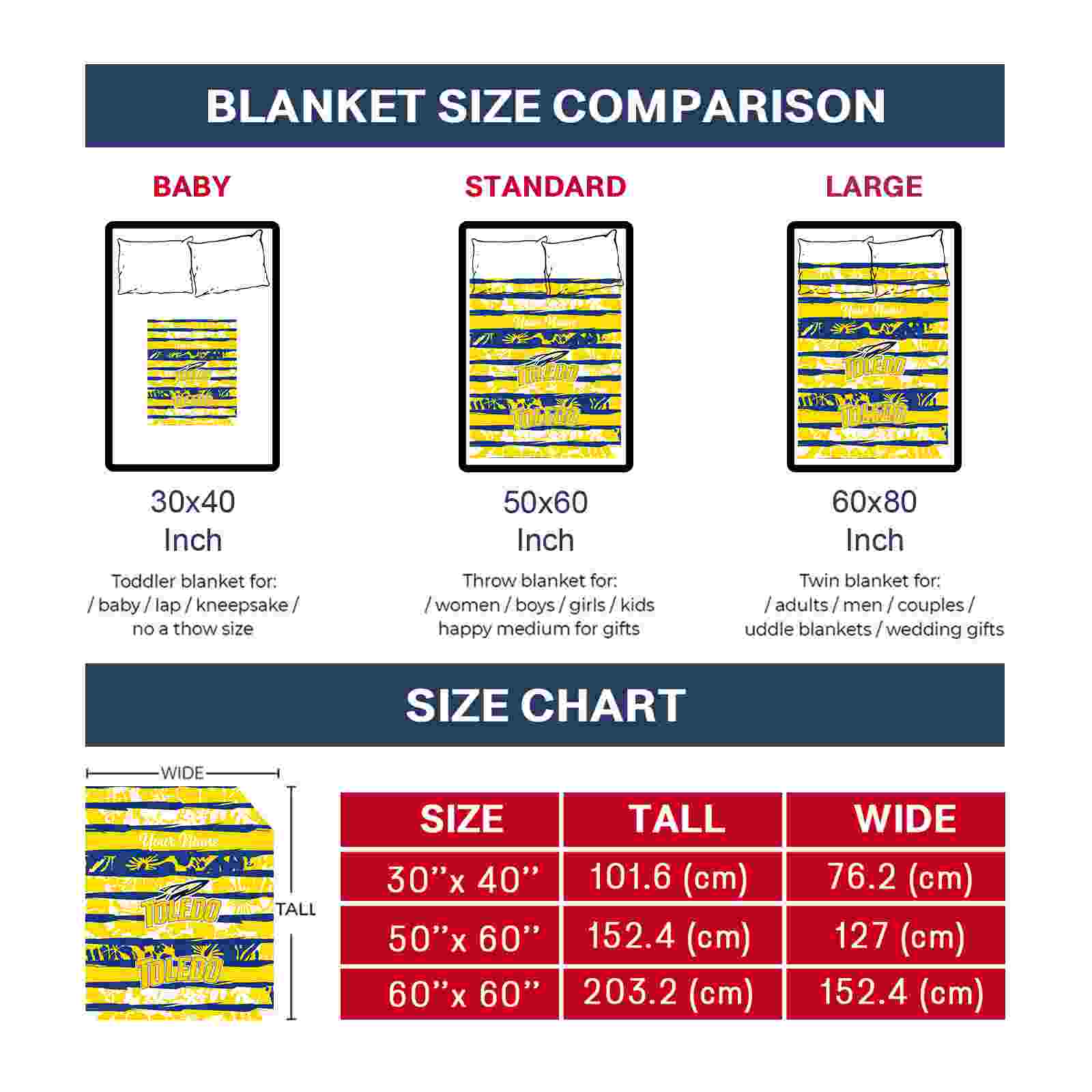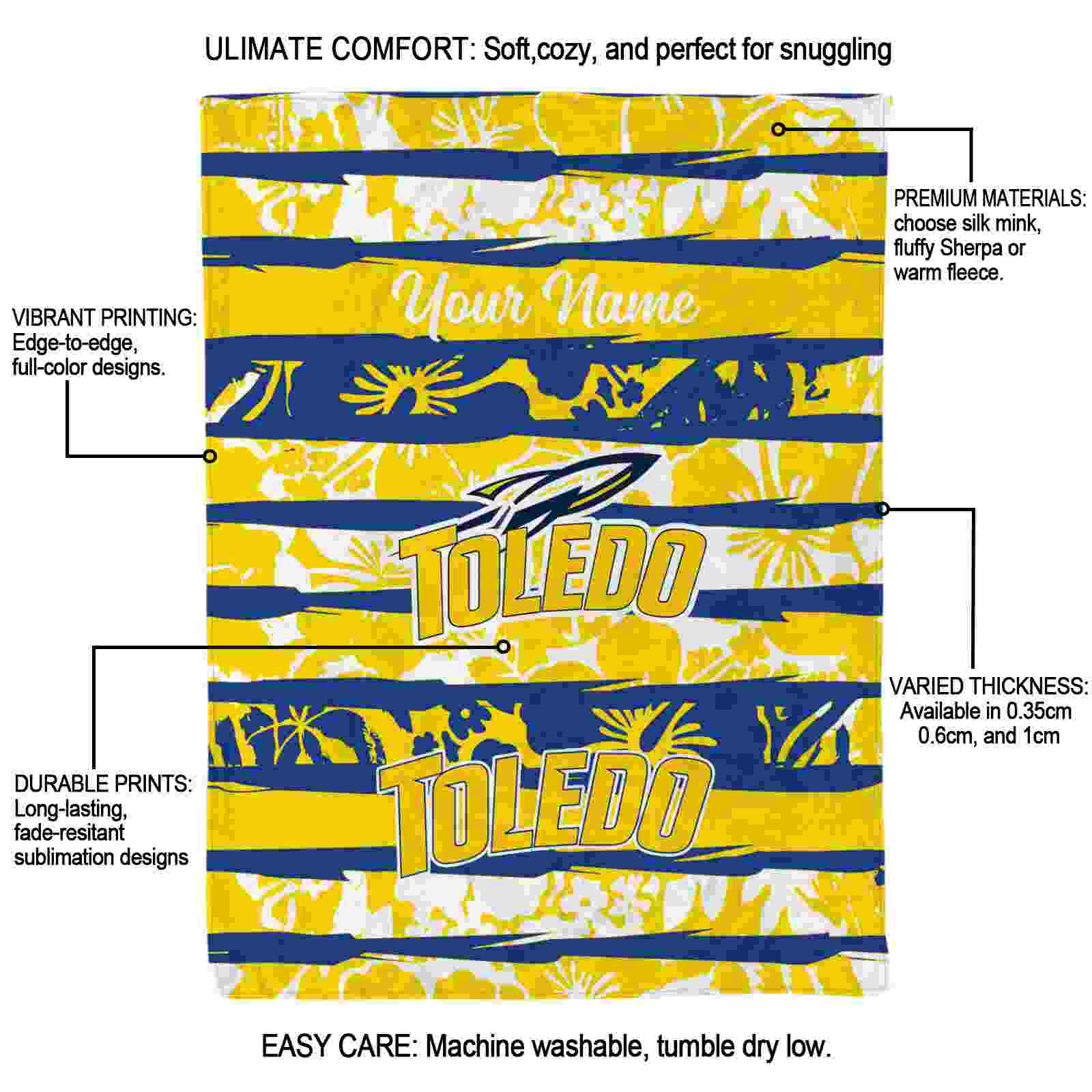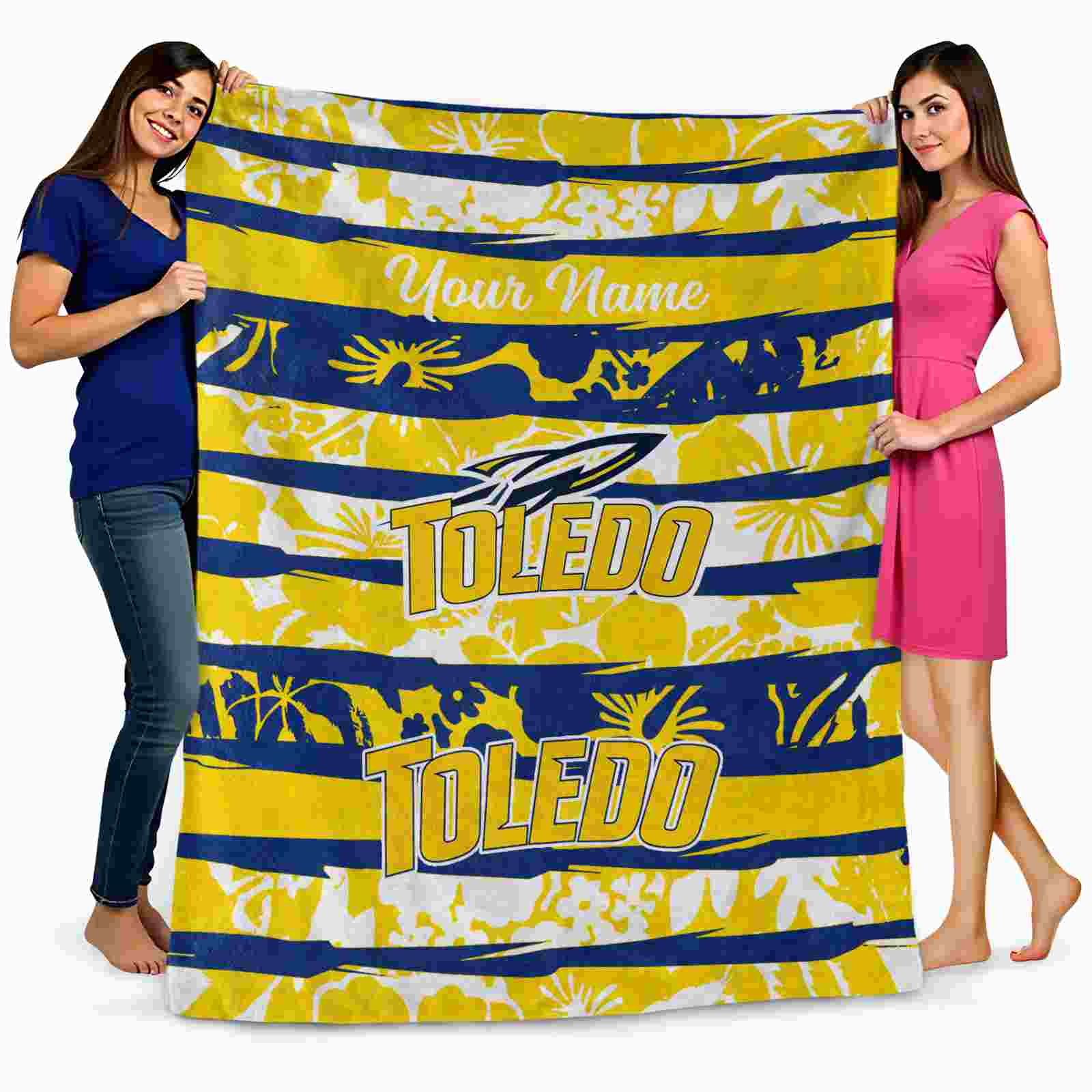 Without a doubt, the Personalized Toledo Rockets Floral Stripes Blue White Blanket from Toledo Rockets Blankets collection is offering true fans a chance to showcase passion in a cool way. Personalize it with your favorite team’s logo or a meaningful name to make it uniquely yours. Isn’t that great? The full-color print ensures vibrant, edge-to-edge designs, bringing your sports enthusiasm to life!