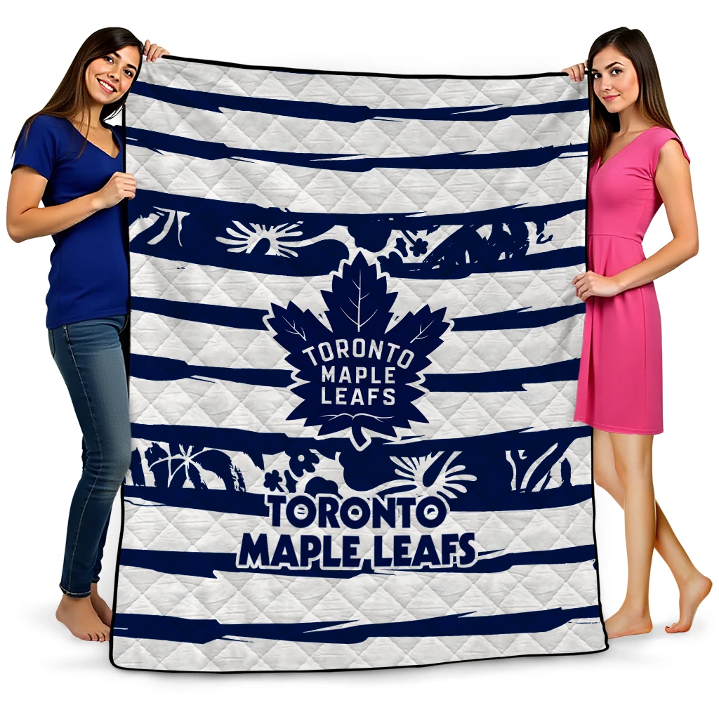 Personalized Toronto Maple Leafs Layered Florals Blue White Quilt Blanket