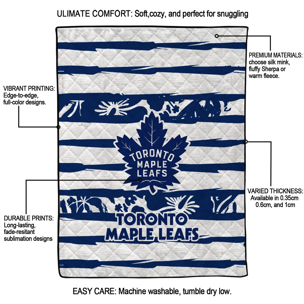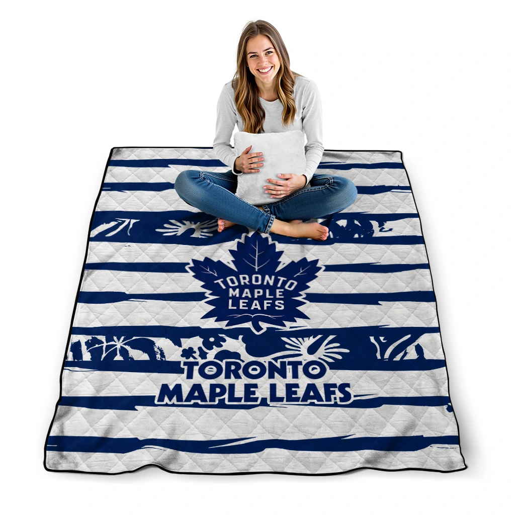 The Personalized Toronto Maple Leafs Layered Florals Blue White Quilt Blanket is more than a blanket—it’s everyday comfort, thoughtfully made. Crafted from premium quilting fabric with a soft microfiber touch, it offers a smooth hand-feel and lasting coziness. Layered quilting with a cotton-filled core provides adaptable warmth across seasons while maintaining a clean, tailored look on your bed or sofa.