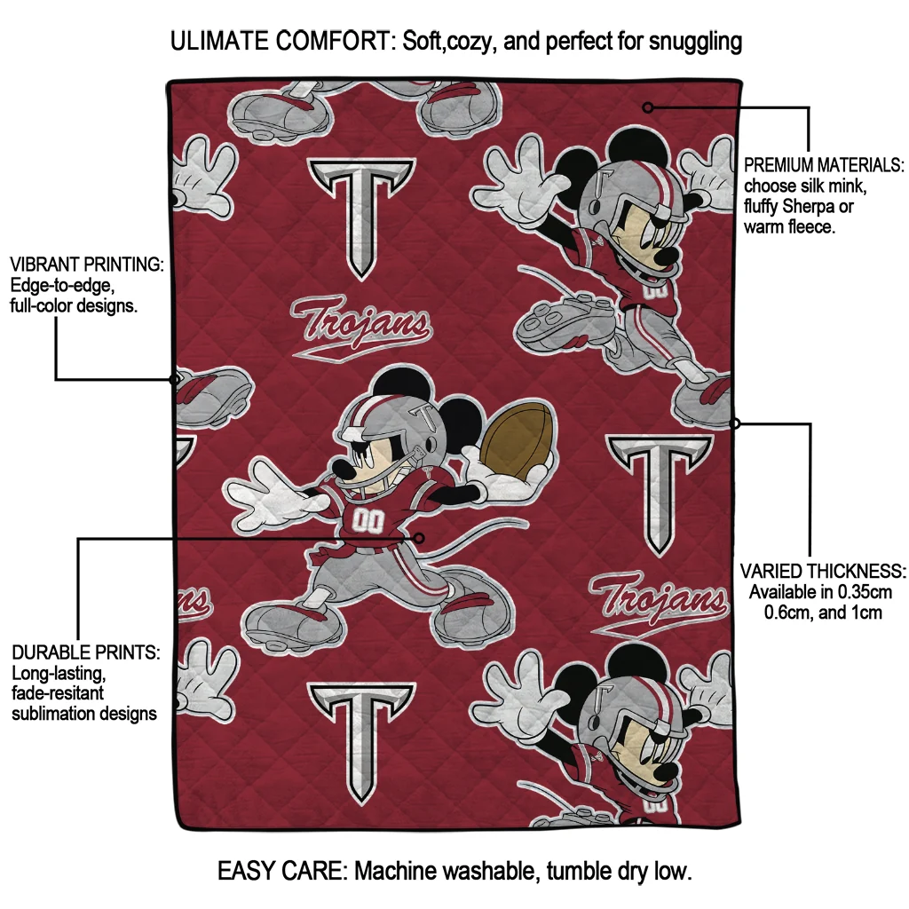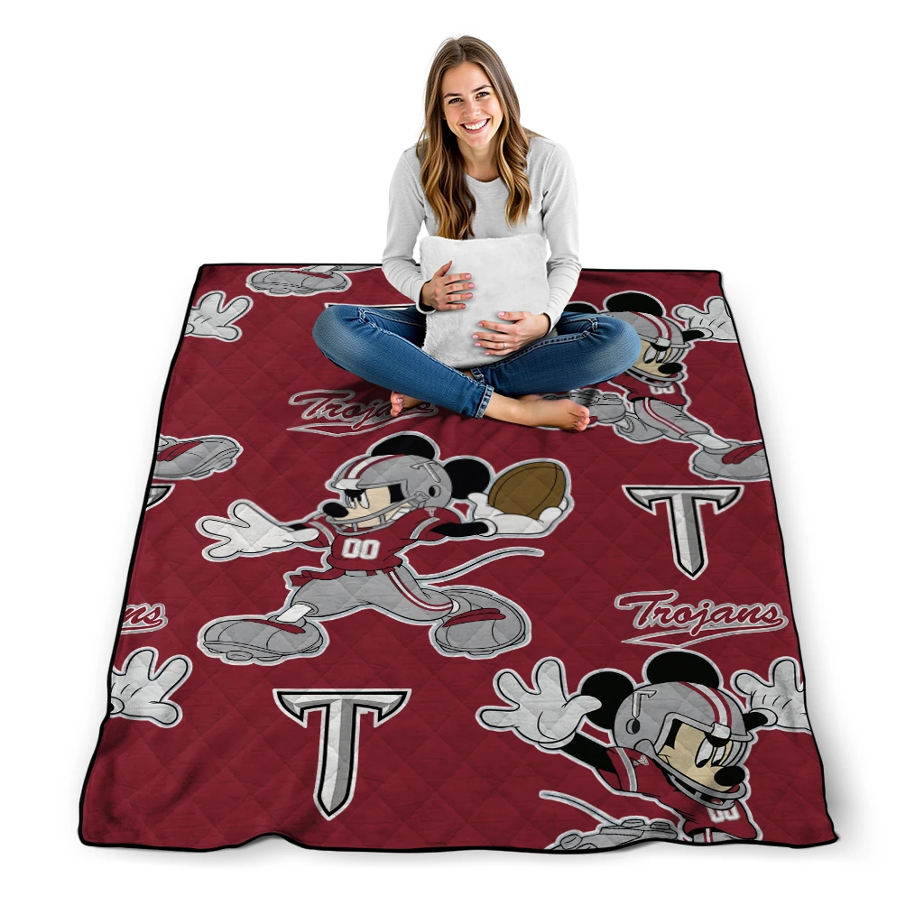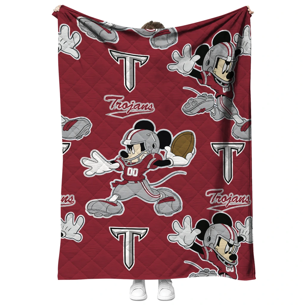 Personalized Troy Trojans Mickey Football Red Quilt Blanket