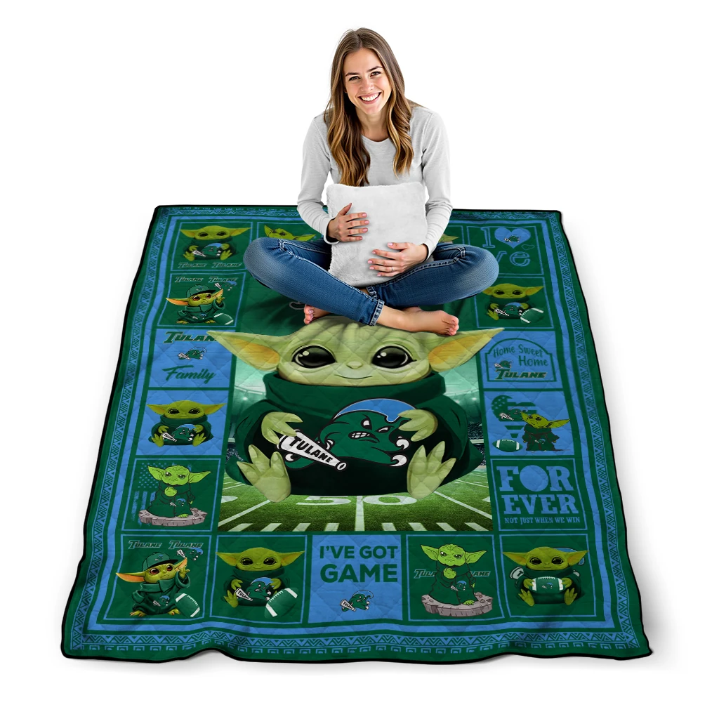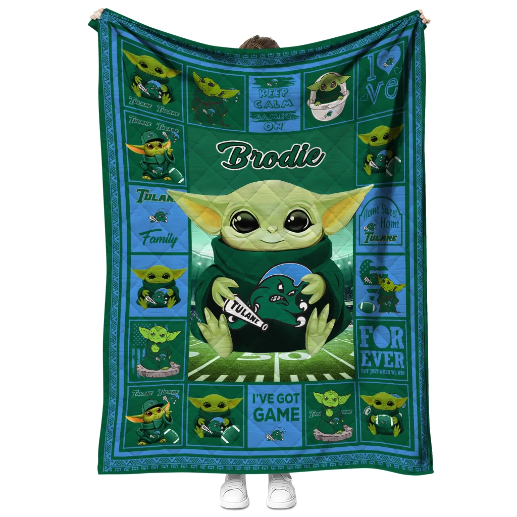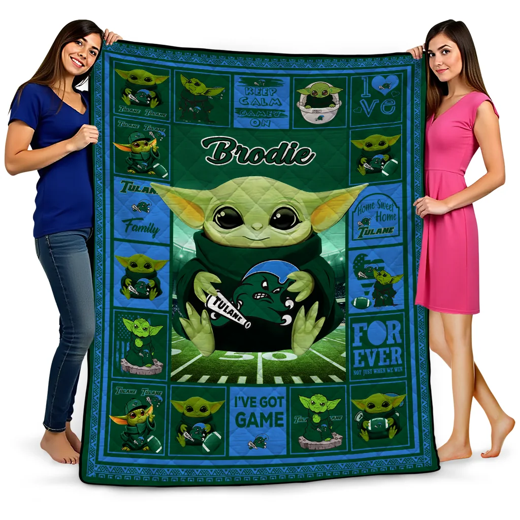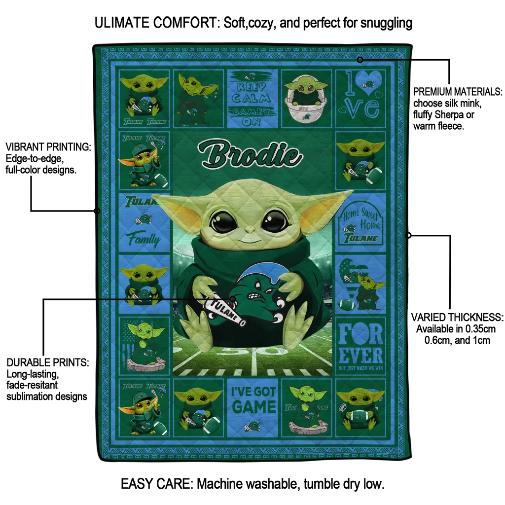 Wrap yourself in warmth and pride with the Personalized Tulane Green Wave Yody Baby Pattern Green Quilt Blanket from the Tulane Green Wave Blankets collection at Yes That Blanket. Made from 100% premium quilting-weight polyester blended with a touch of microfiber, this quilt offers a smooth, soft finish you’ll love. Choose between two quilting styles—Stipple or Diagonal—and enjoy the comfort of a cotton-filled layer inside that adds extra coziness for every season. The border is available in classic black or white, giving your design a clean, timeless edge.