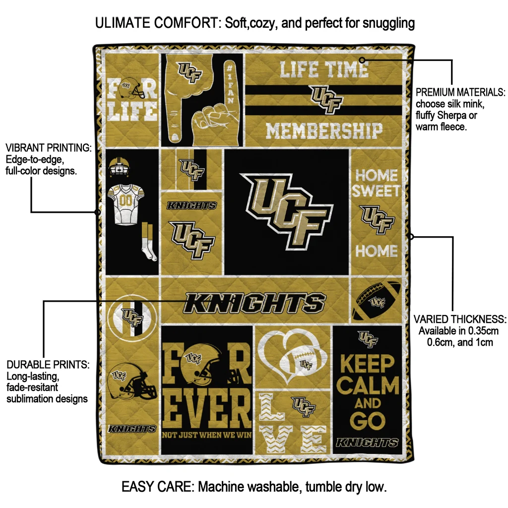 The Personalized UCF Knights Helmet Passion Gold Quilt Blanket is more than a blanket—it’s everyday comfort, thoughtfully made. Crafted from premium quilting fabric with a soft microfiber touch, it offers a smooth hand-feel and lasting coziness. Layered quilting with a cotton-filled core provides adaptable warmth across seasons while maintaining a clean, tailored look on your bed or sofa.