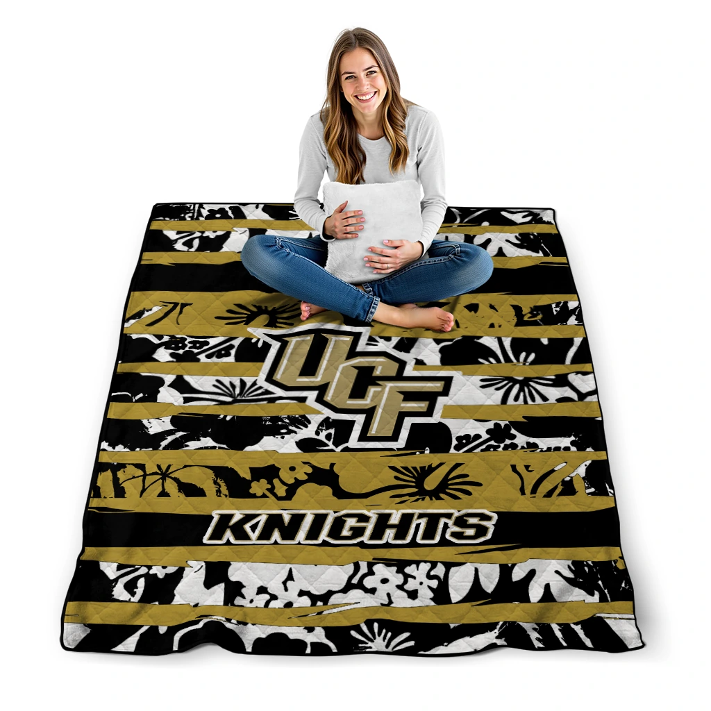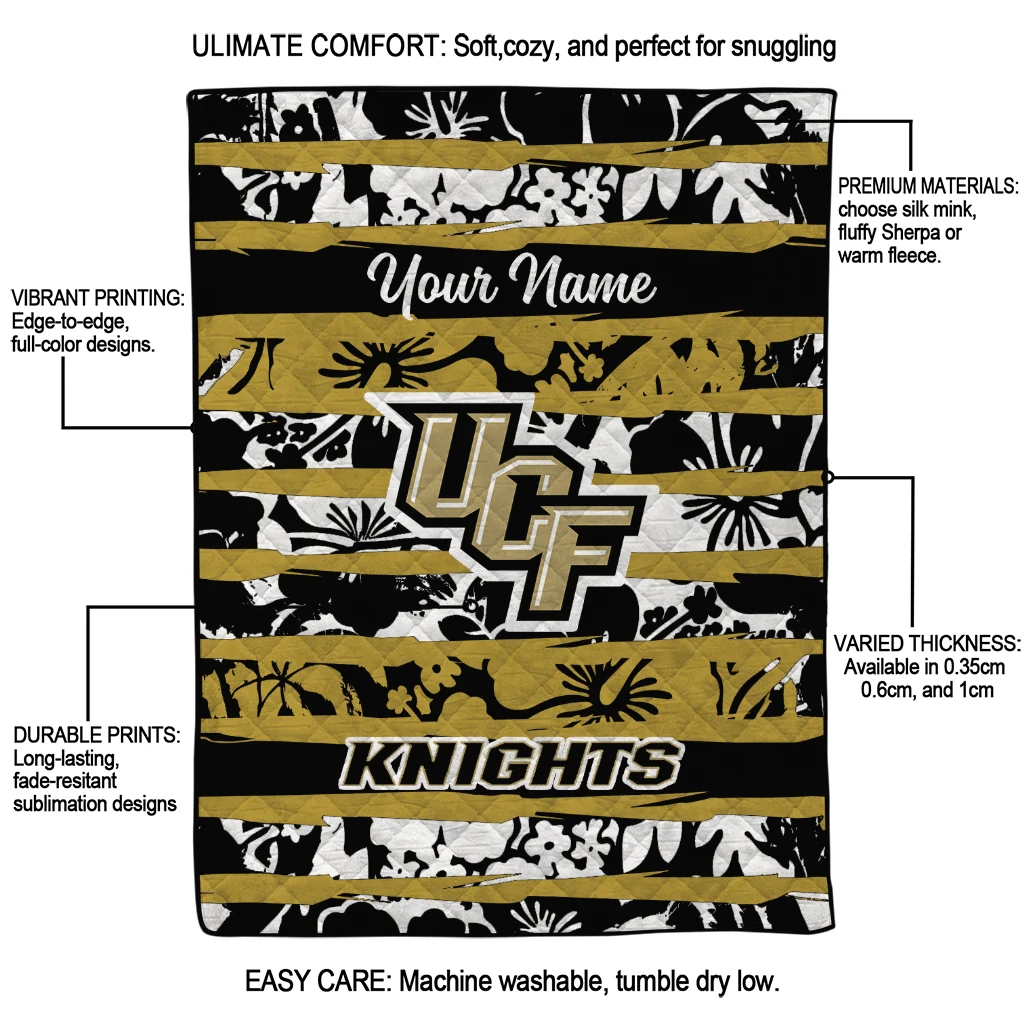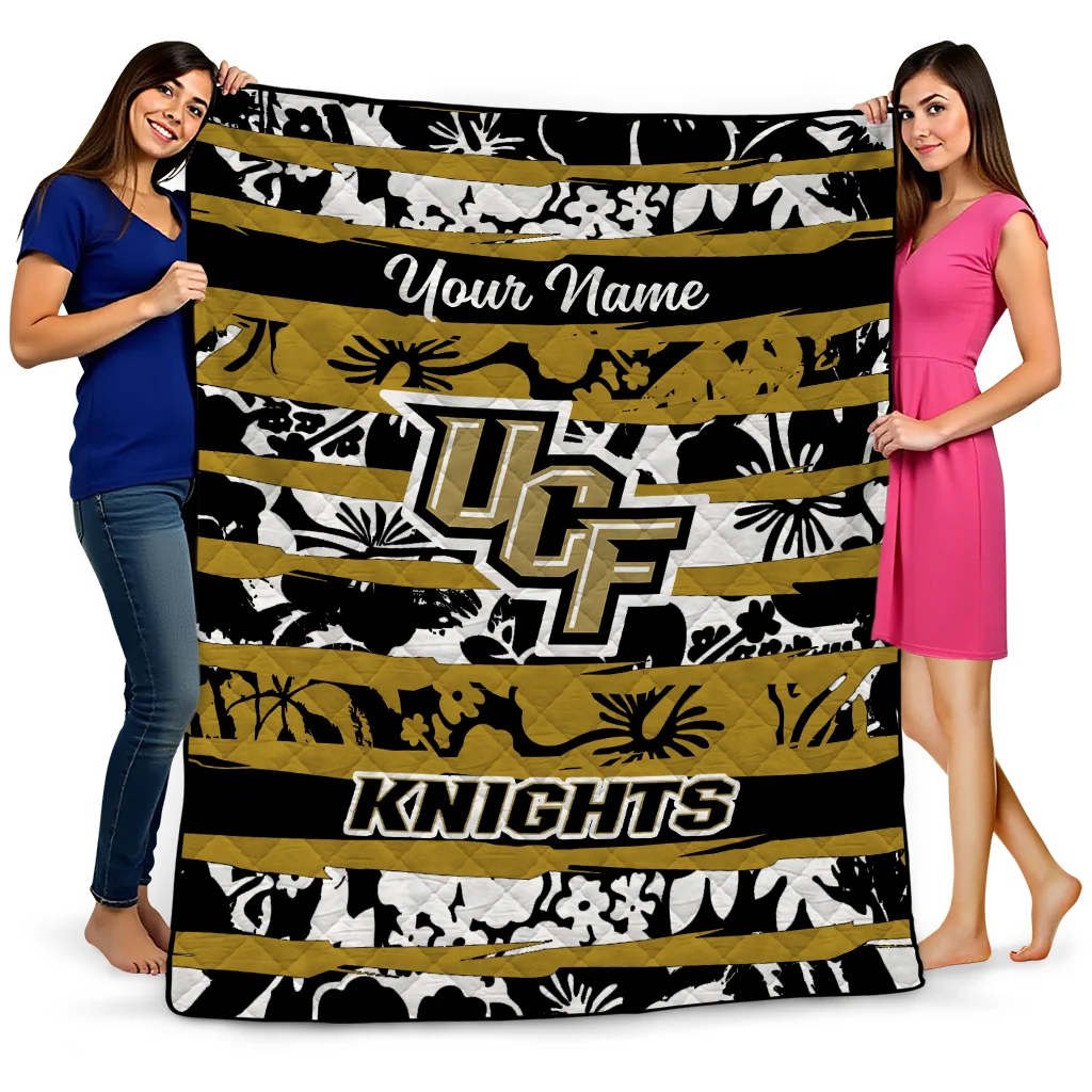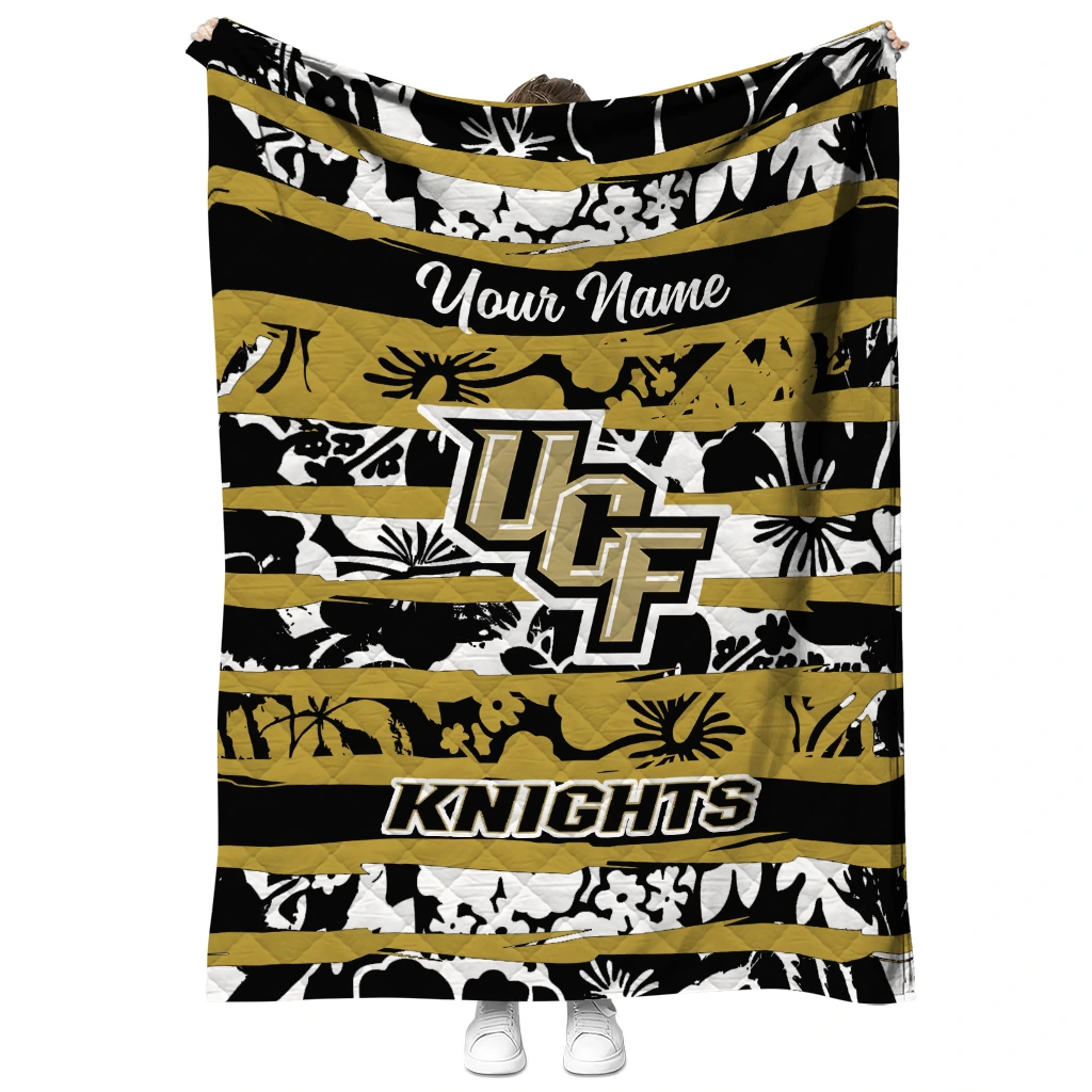 Personalized UCF Knights Layered Florals Gold White Quilt Blanket