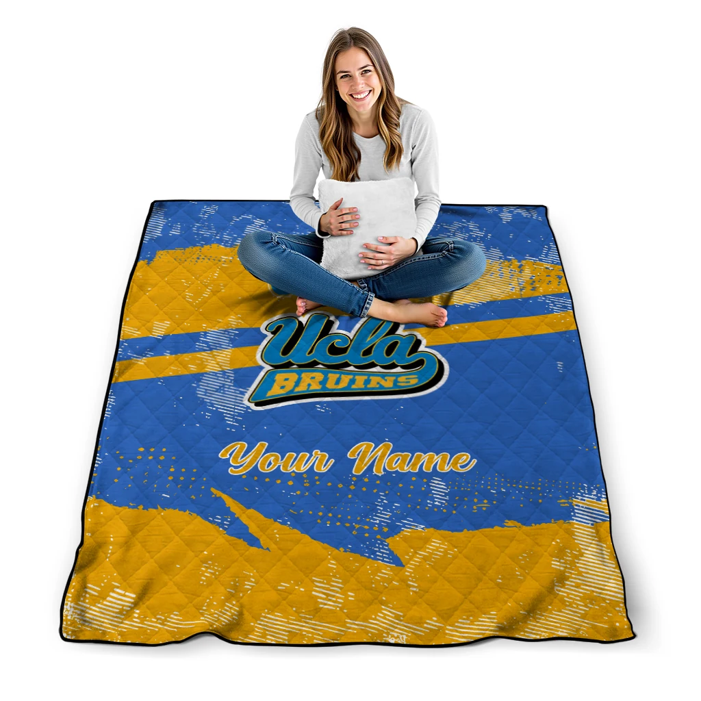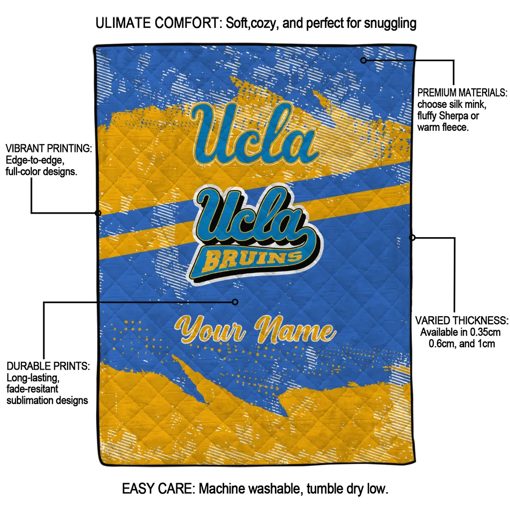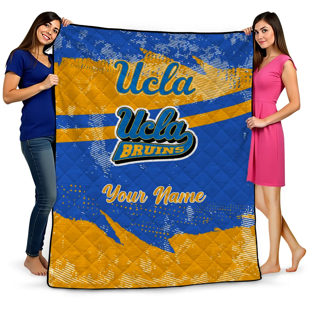 Personalized UCLA Bruins Brushstroke Layers Blue Quilt Blanket