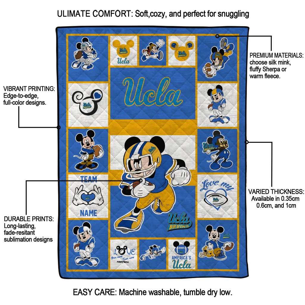 Personalized UCLA Bruins Mickey Crimson Blue White Quilt Blanket