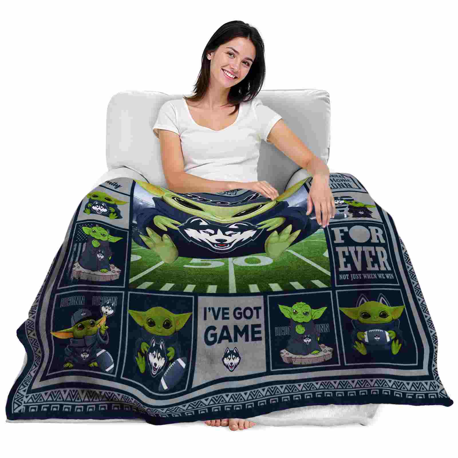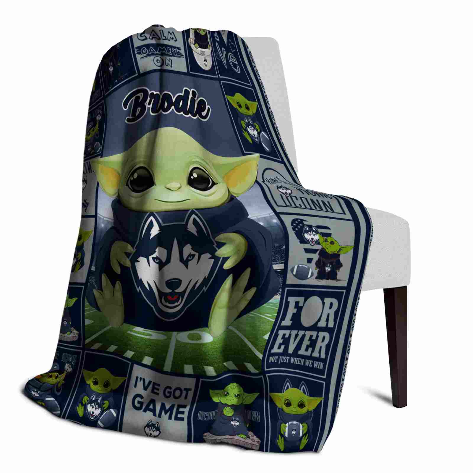 The Personalized UConn Huskies Baby Yoda Blue Blanket isn’t just a blanket—it’s your connection to the game. Snuggle up while reliving legendary plays or dreaming of future championships. Its bold, team-inspired designs keep your love for the sport front and center, while its easy-care durability means it’s always ready for your next adventure. From cheering at home to showcasing your loyalty on the go, this item of NCAA Blankets collection is made for fans who live and breathe the game.