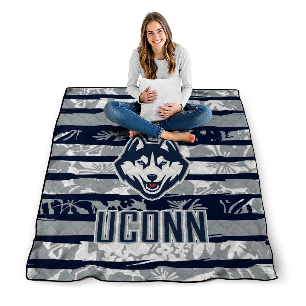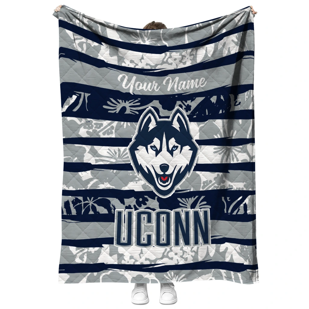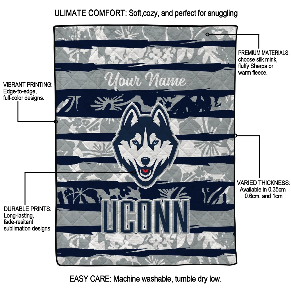 Personalized UConn Huskies Layered Florals Blue White Quilt Blanket