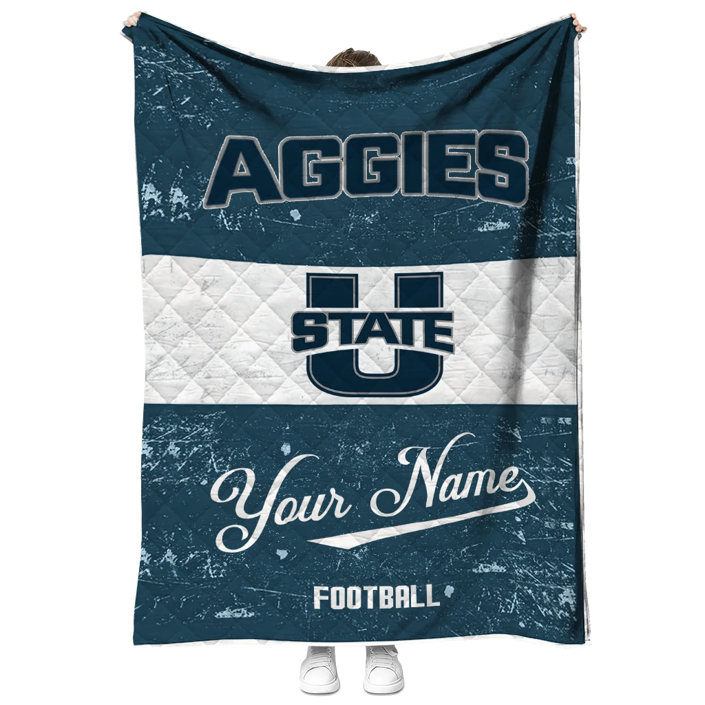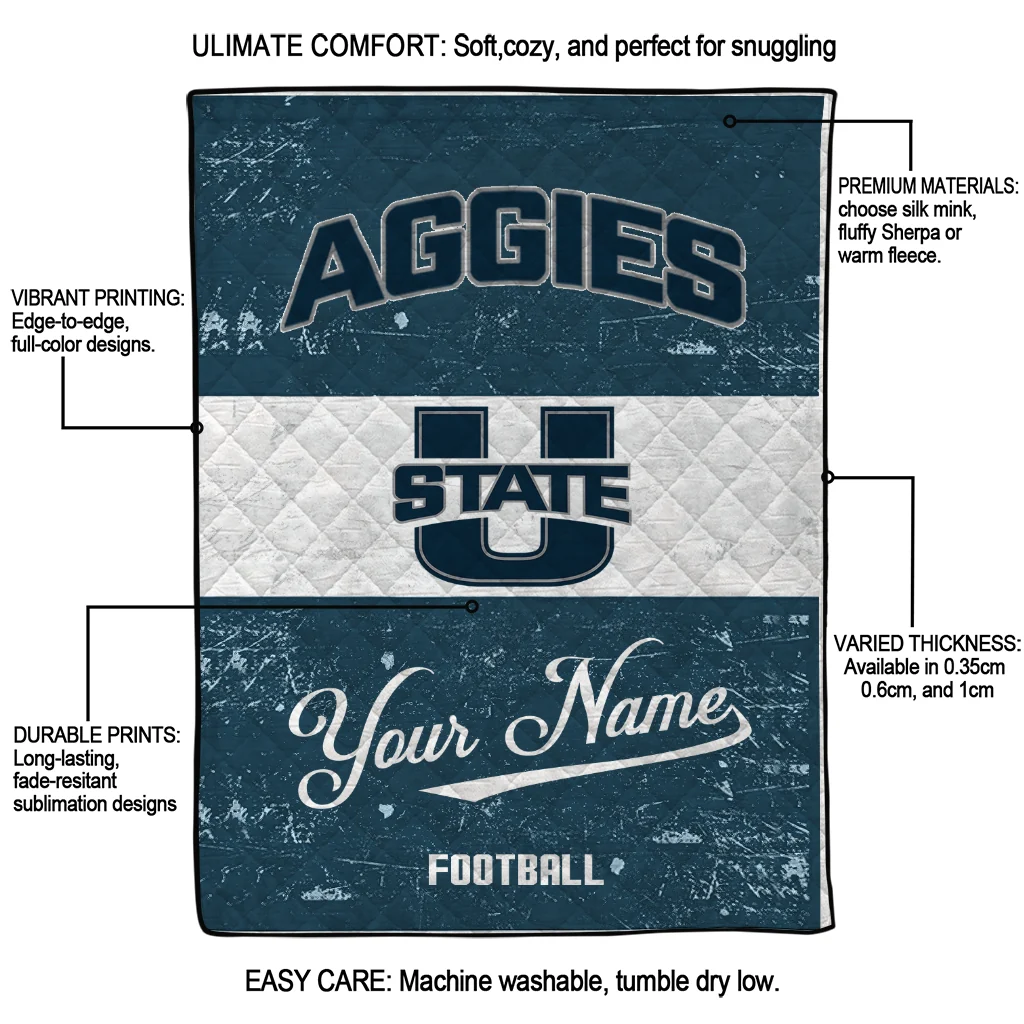 Wrap yourself in warmth and pride with the Personalized Utah State Aggies Hibiscus Burst Navy White Quilt Blanket from the Utah State Aggies Blankets collection at Yes That Blanket. Made from 100% premium quilting-weight polyester blended with a touch of microfiber, this quilt offers a smooth, soft finish you’ll love. Choose between two quilting styles—Stipple or Diagonal—and enjoy the comfort of a cotton-filled layer inside that adds extra coziness for every season. The border is available in classic black or white, giving your design a clean, timeless edge.