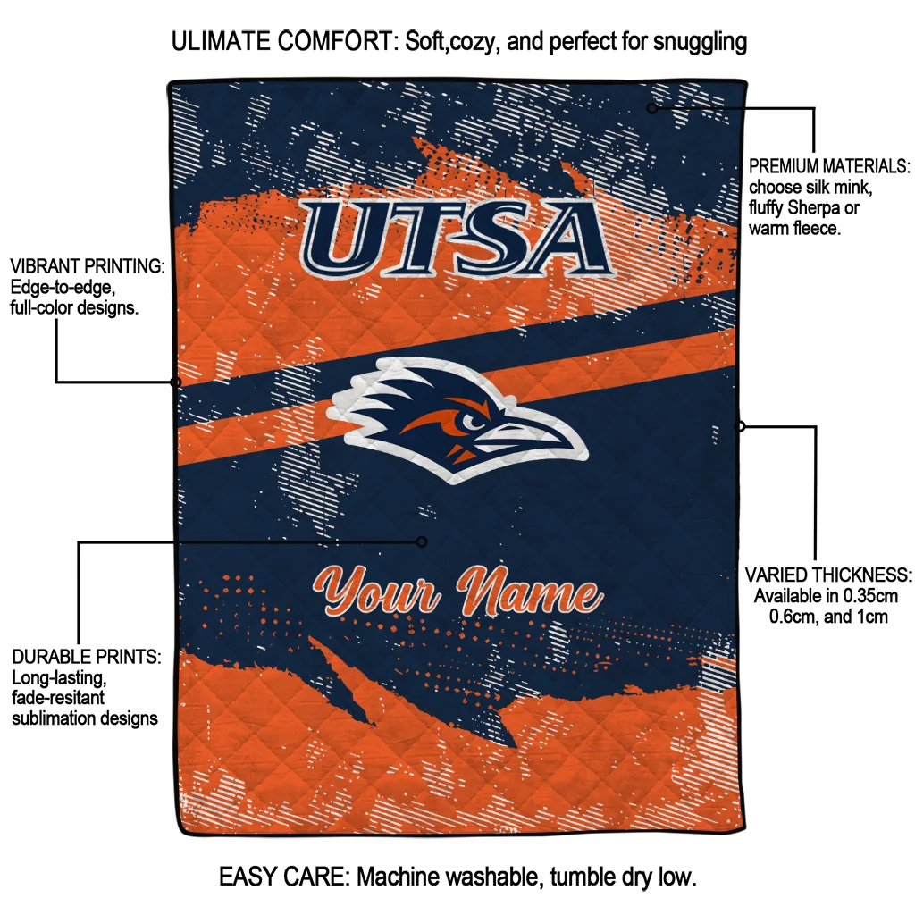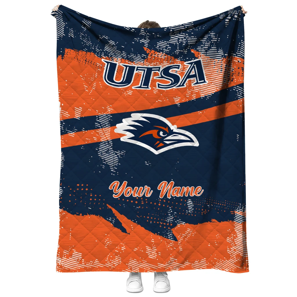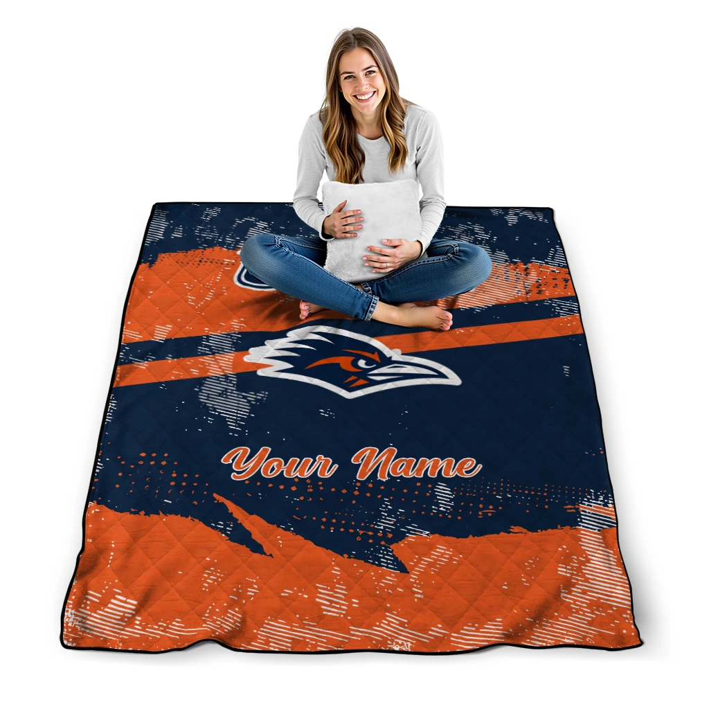 Personalized UTSA Roadrunners Brushstroke Layers Orange Quilt Blanket