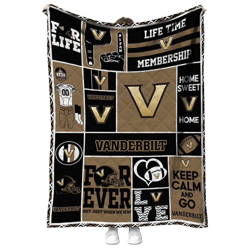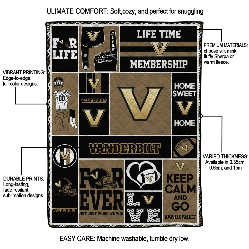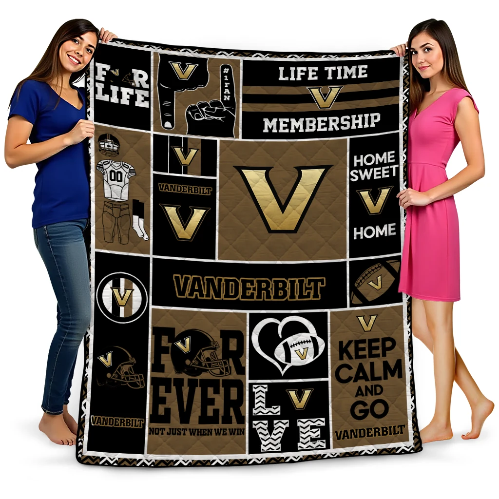 Personalized Vanderbilt Commodores Helmet Passion Black Quilt Blanket