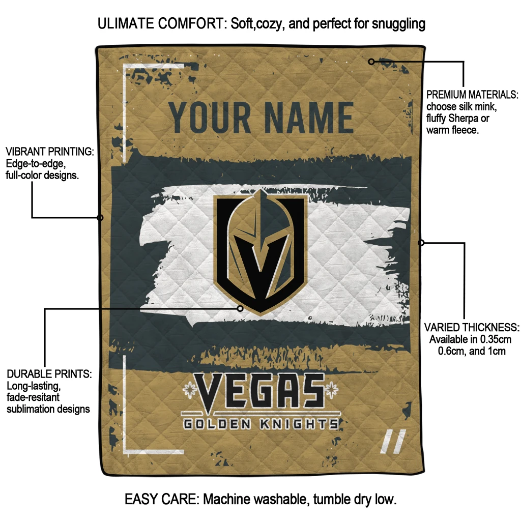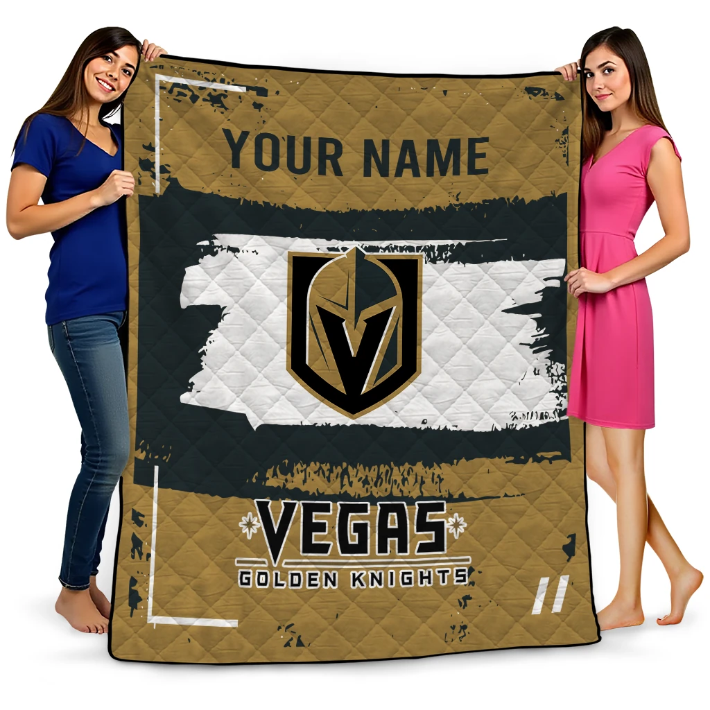 The Personalized Vegas Golden Knights Grunge Patch Tan White Quilt Blanket is more than a blanket—it’s everyday comfort, thoughtfully made. Crafted from premium quilting fabric with a soft microfiber touch, it offers a smooth hand-feel and lasting coziness. Layered quilting with a cotton-filled core provides adaptable warmth across seasons while maintaining a clean, tailored look on your bed or sofa.
