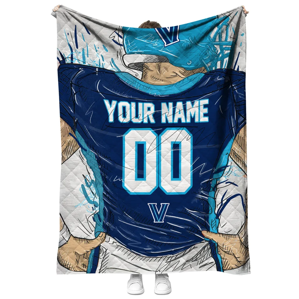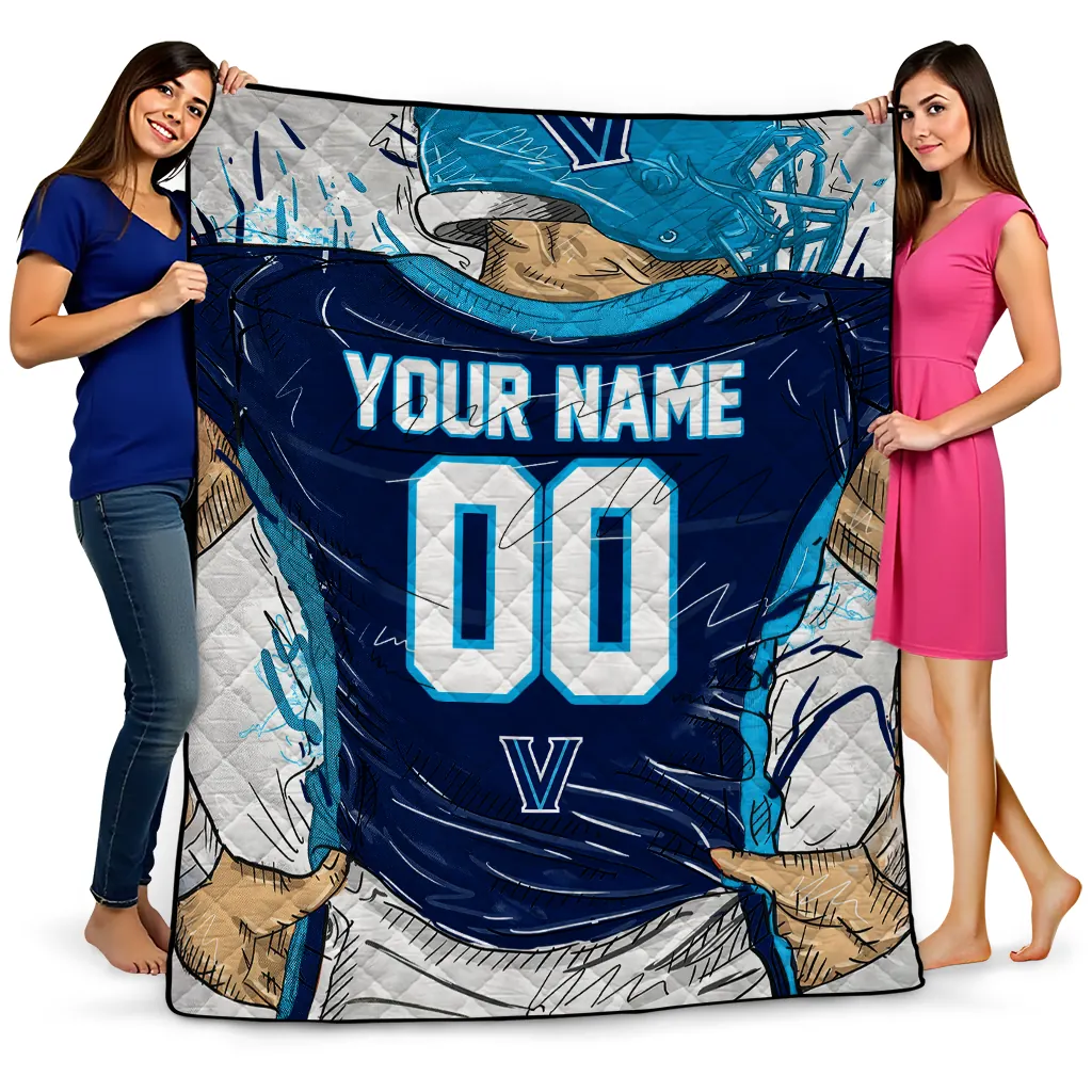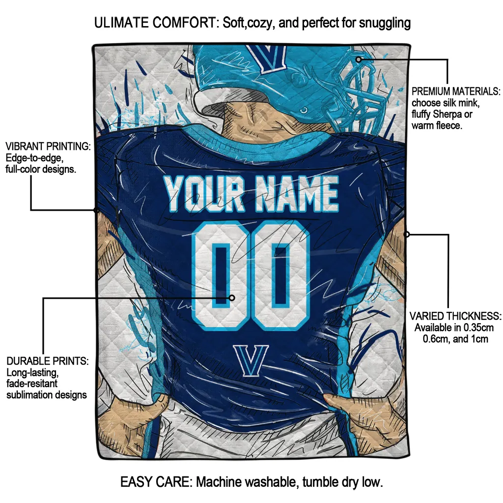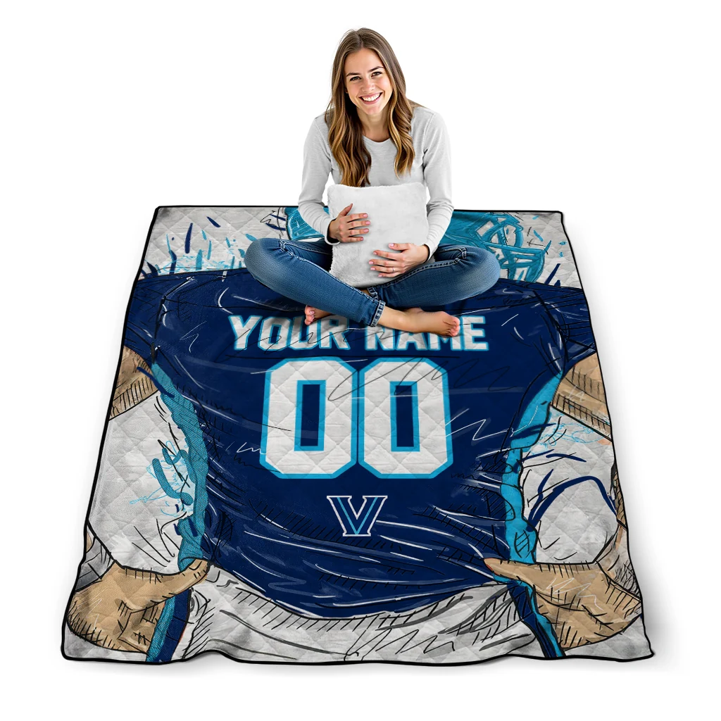 Personalized Villanova Wildcats Player Sketch Navy Gray Quilt Blanket