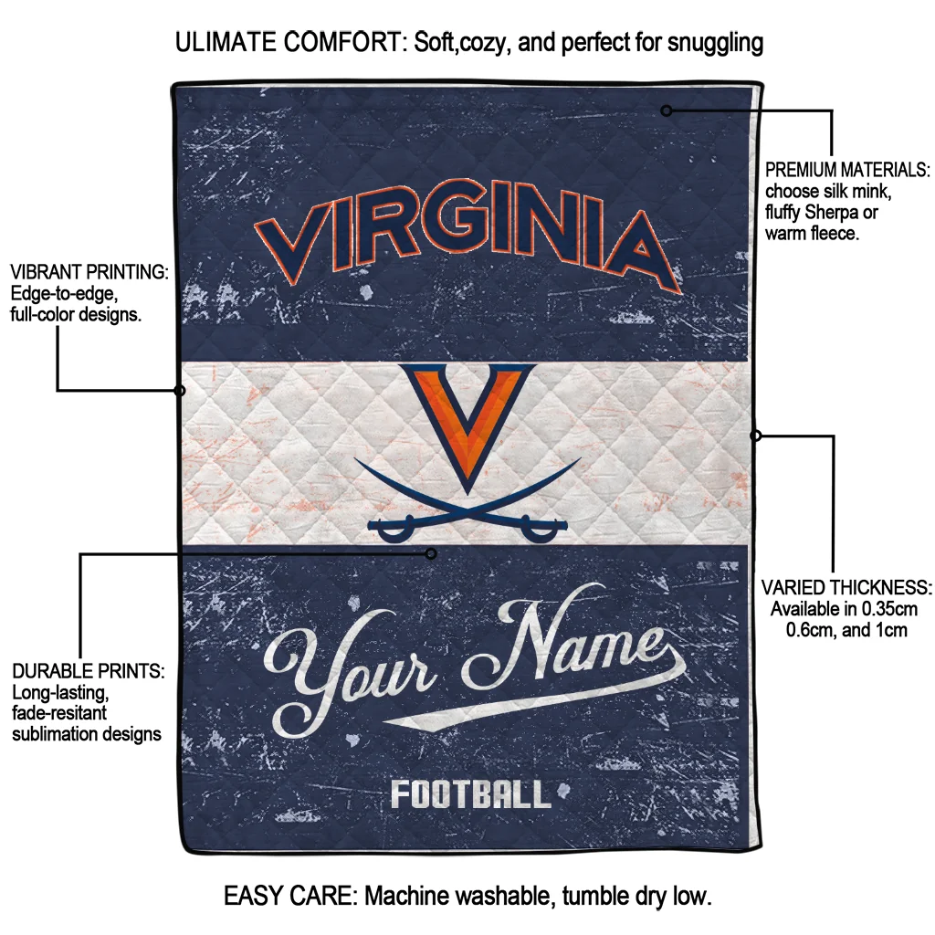 The Personalized Virginia Cavaliers Hibiscus Burst Blue White Quilt Blanket is more than a blanket—it’s everyday comfort, thoughtfully made. Crafted from premium quilting fabric with a soft microfiber touch, it offers a smooth hand-feel and lasting coziness. Layered quilting with a cotton-filled core provides adaptable warmth across seasons while maintaining a clean, tailored look on your bed or sofa.