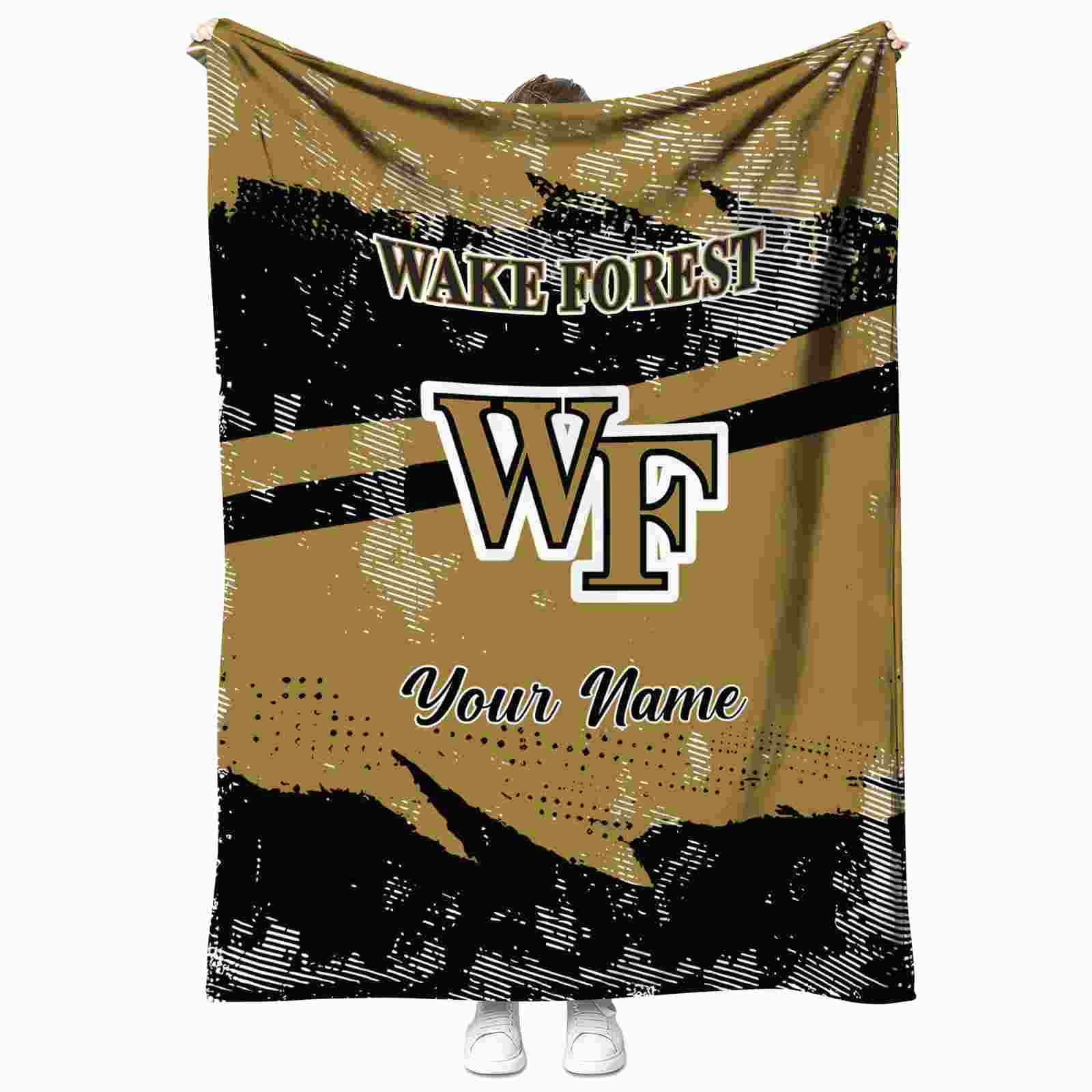Personalized Wake Forest Demon Deacons Grunge Streaks Gold Blanket