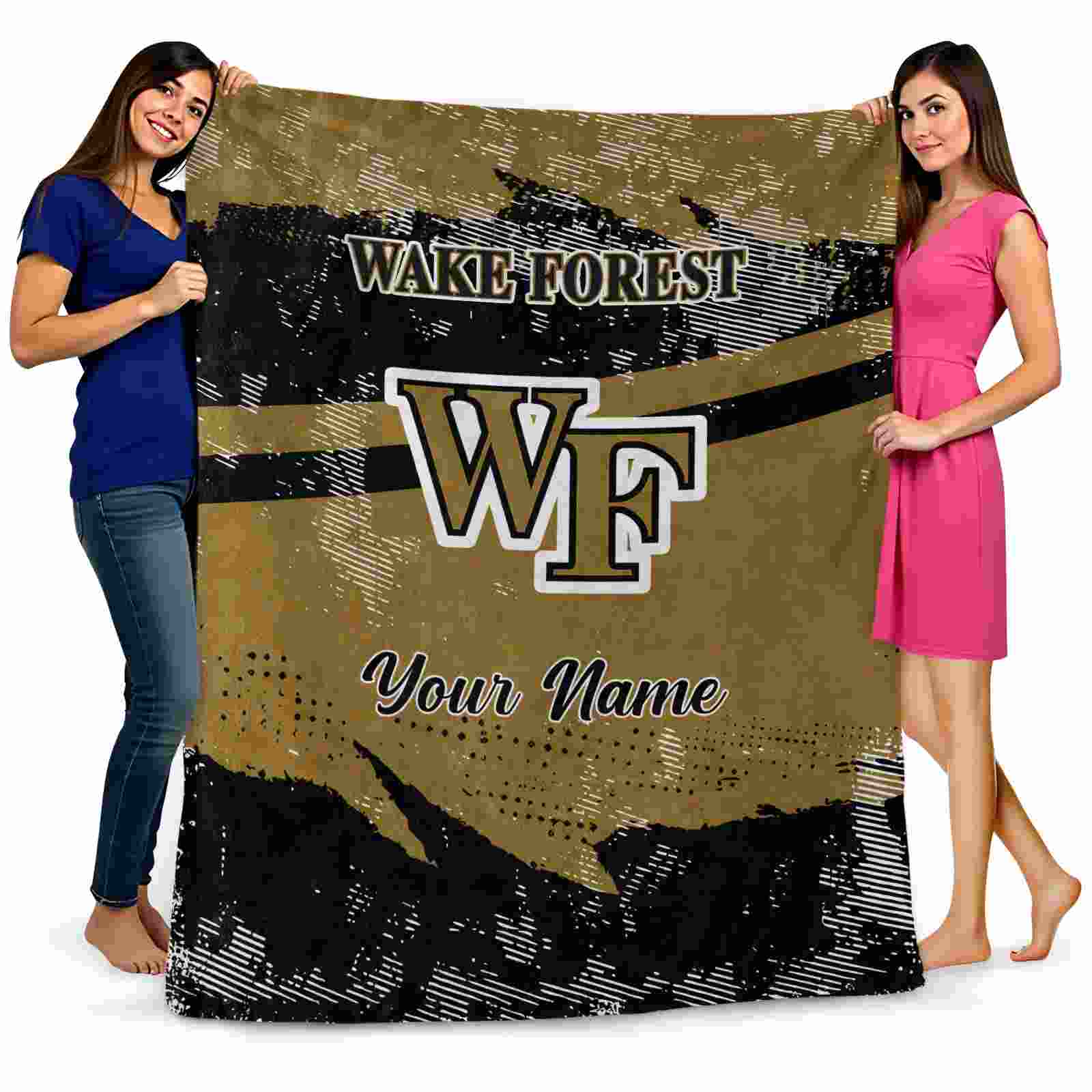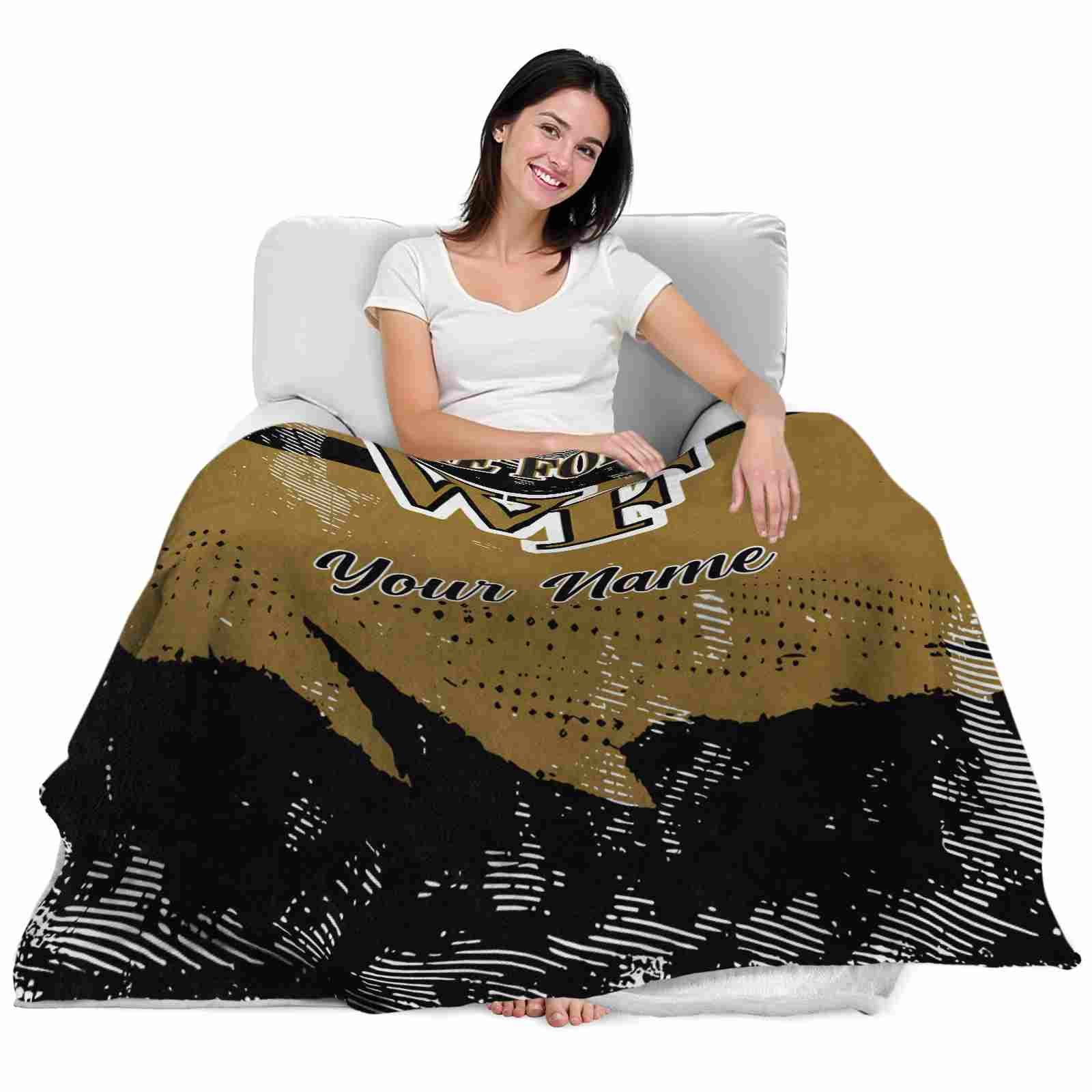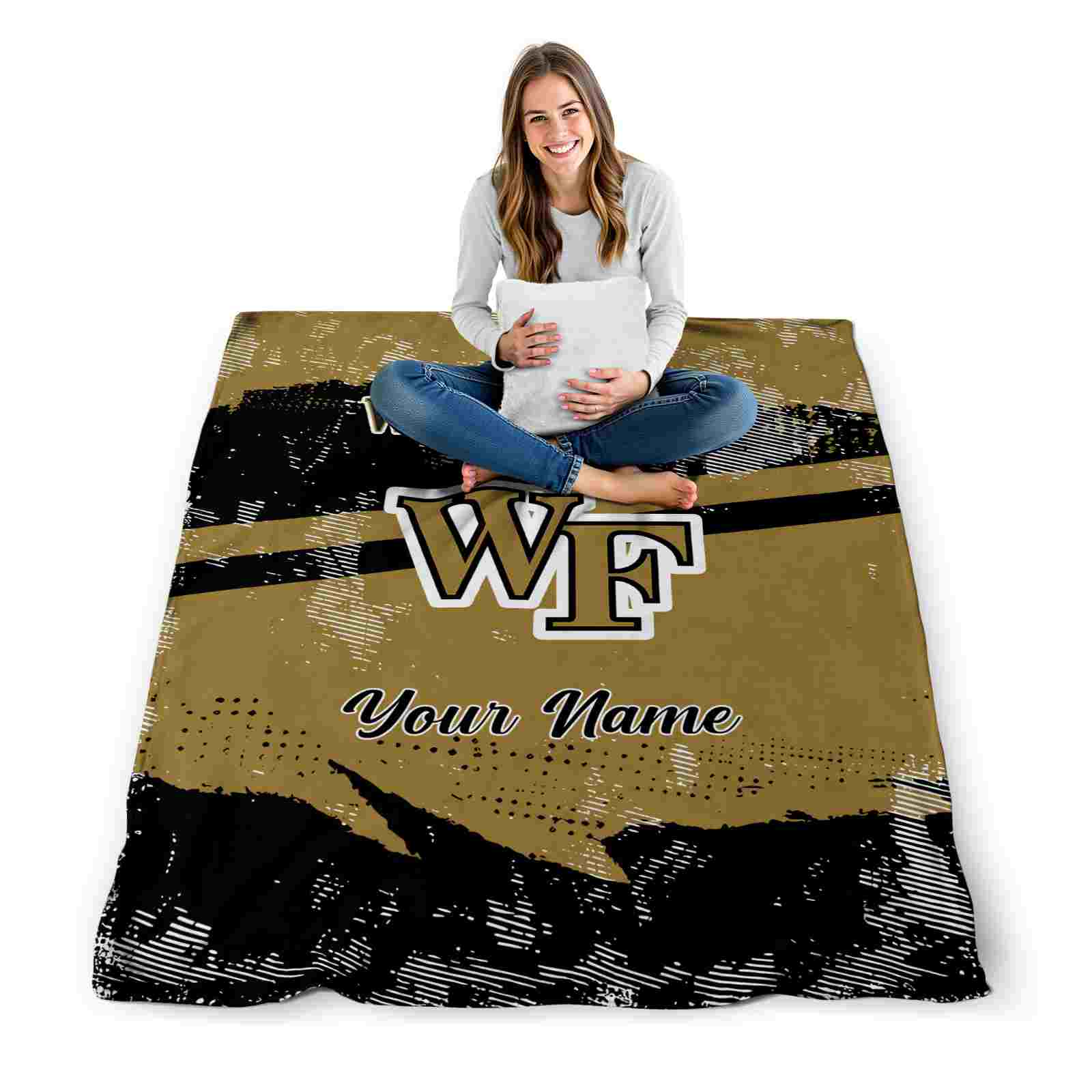 Without a doubt, the Personalized Wake Forest Demon Deacons Grunge Streaks Gold Blanket from Wake Forest Demon Deacons Blankets collection is offering true fans a chance to showcase passion in a cool way. Personalize it with your favorite team’s logo or a meaningful name to make it uniquely yours. Isn’t that great? The full-color print ensures vibrant, edge-to-edge designs, bringing your sports enthusiasm to life!