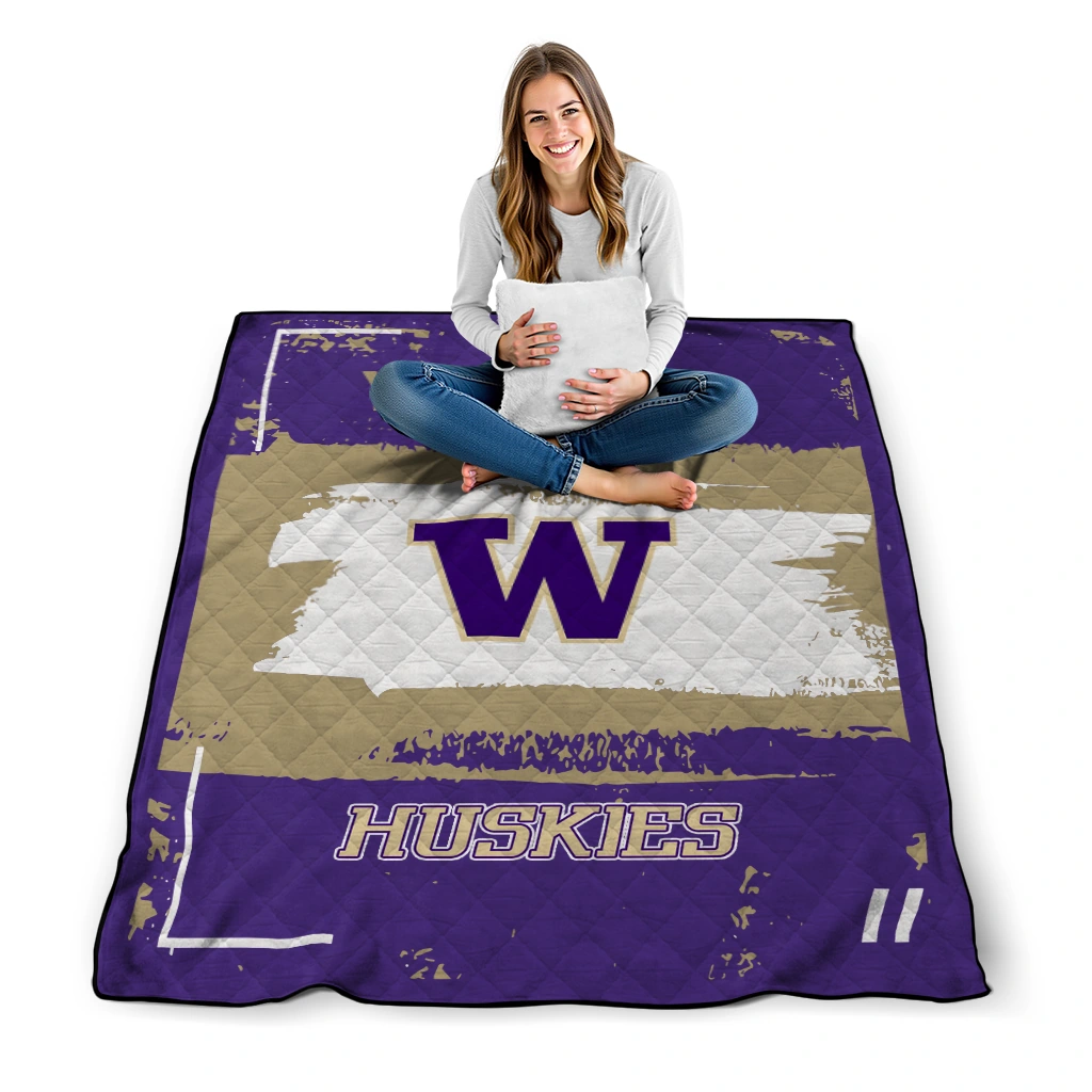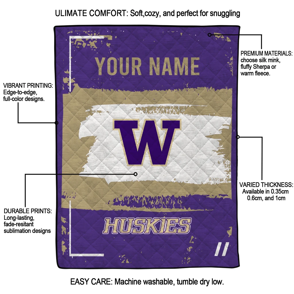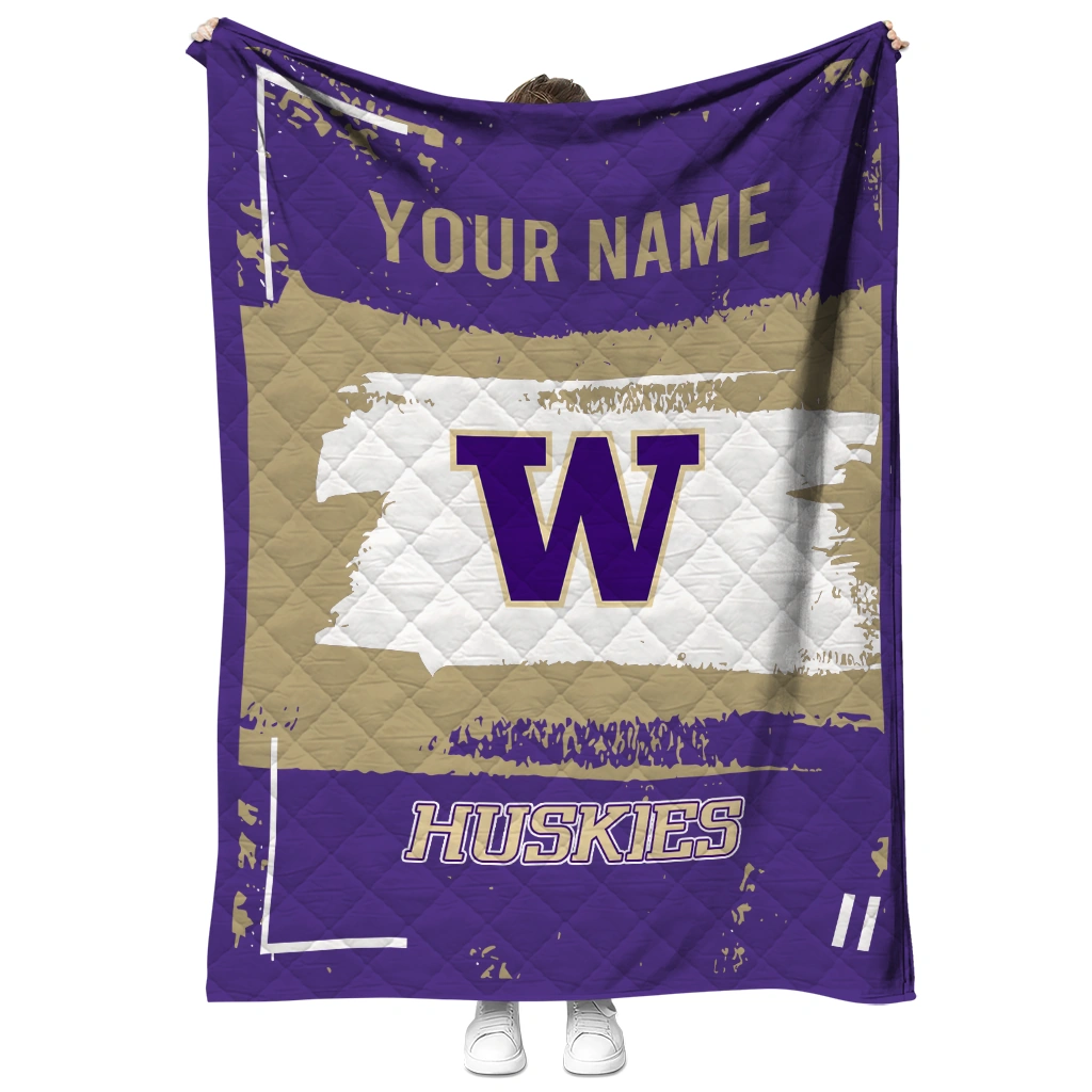 Personalized Washington Huskies Grunge Patch Purple White Quilt Blanket