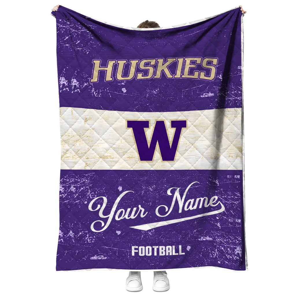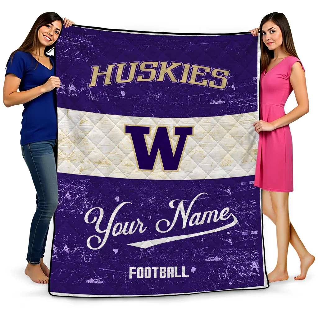 Personalized Washington Huskies Hibiscus Burst Purple White Quilt Blanket