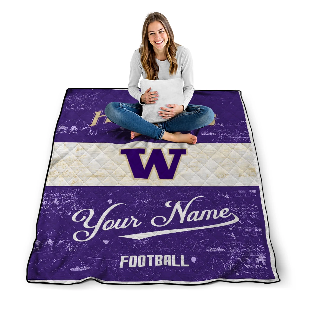 Wrap yourself in warmth and pride with the Personalized Washington Huskies Hibiscus Burst Purple White Quilt Blanket from the Washington Huskies Blankets collection at Yes That Blanket. Made from 100% premium quilting-weight polyester blended with a touch of microfiber, this quilt offers a smooth, soft finish you’ll love. Choose between two quilting styles—Stipple or Diagonal—and enjoy the comfort of a cotton-filled layer inside that adds extra coziness for every season. The border is available in classic black or white, giving your design a clean, timeless edge.